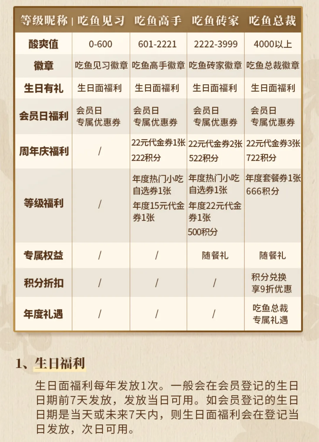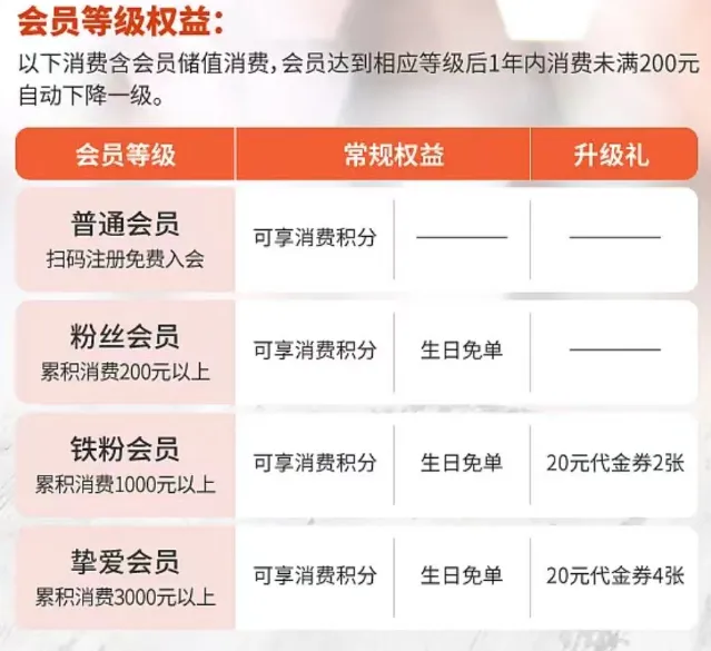 ✅生日礼券:粉丝级以上会员每年生日的前7日内任意一天自动赠送生日免单券1张,有效期自发券之日起15天。(累计消费需要达到一定金额哦~)