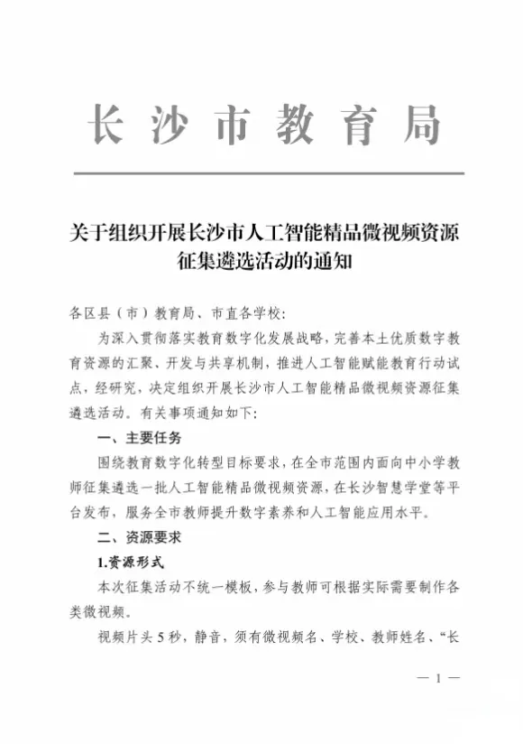 >长沙市人工智能精品微视频资源征集遴选活动的通知来啦!