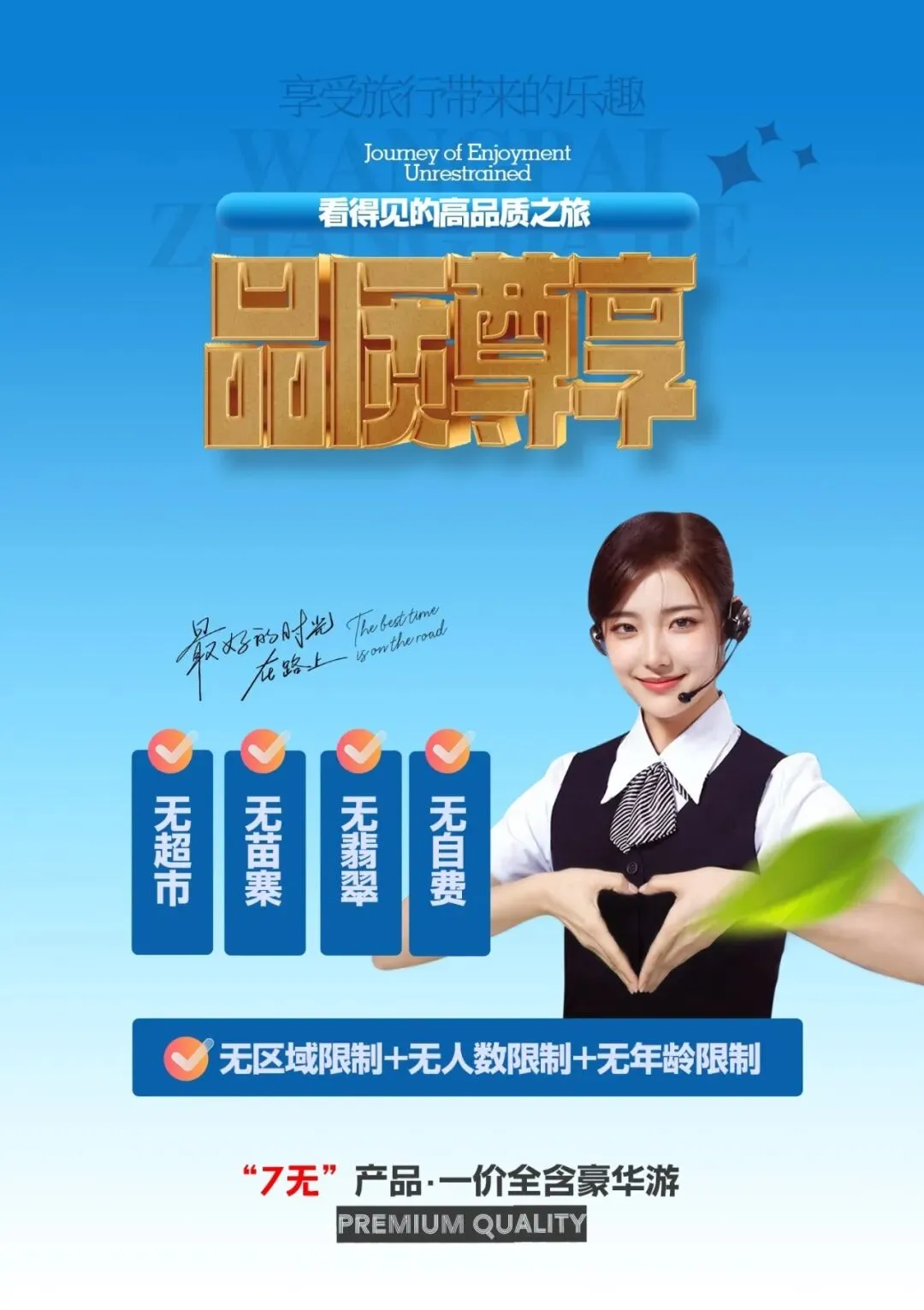 ※七无产品:无翡翠,无自费,无苗寨,无超市,无人数限制,无区域限制,无年龄限制!