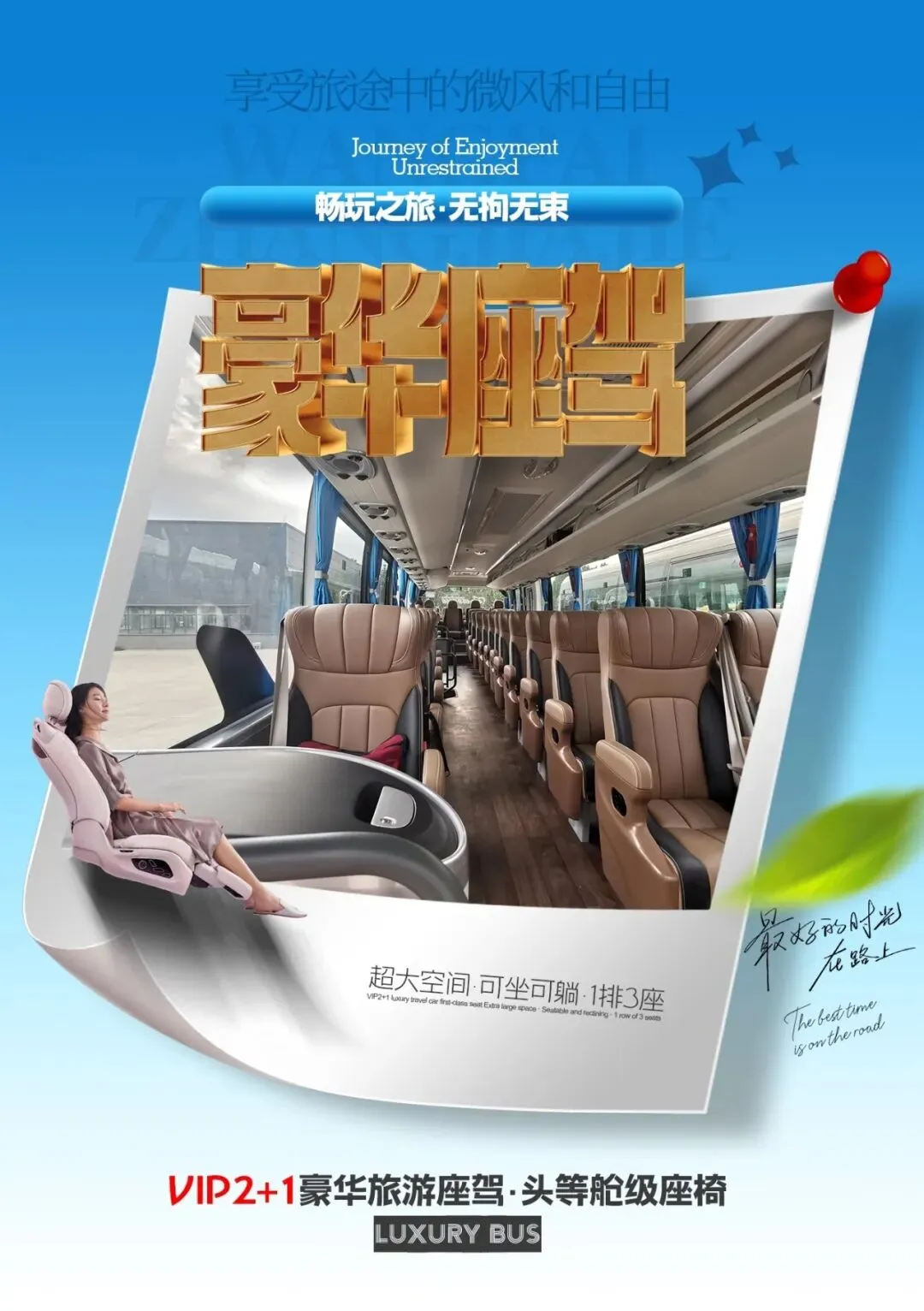 ※豪华VIP2+1旅游巴士,头等舱座椅,让您有一个舒适的旅程!