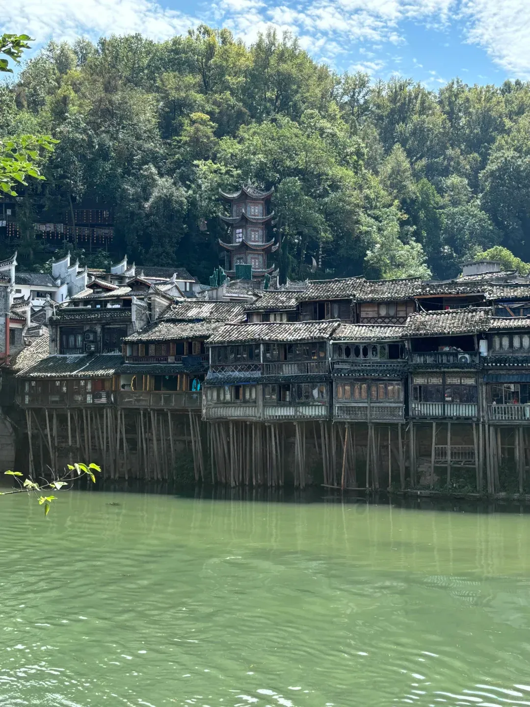 ※中国最浪漫的古城凤凰古城5A:沱江泛舟—坐上乌篷船欣赏百年土家吊脚楼;邂逅一个人·艳遇一座城!跟着沈从文一起,探寻吊脚楼里的小城故事;