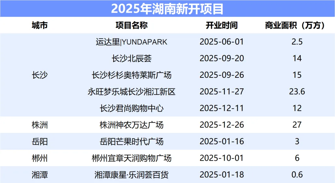 在 “存量优化、结构升级” 的行业背景下,湖南商业新增供应呈明显收缩态势。