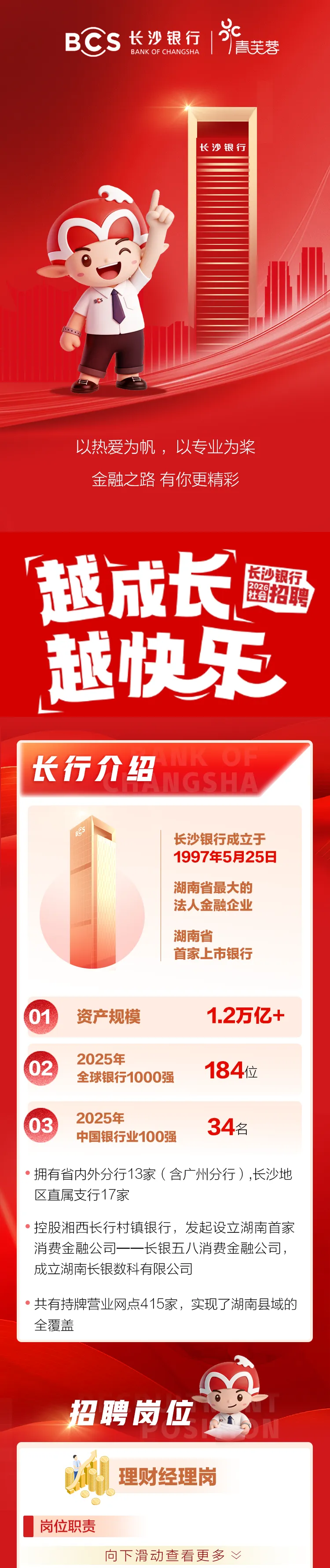 长沙银行2026理财经理招聘!