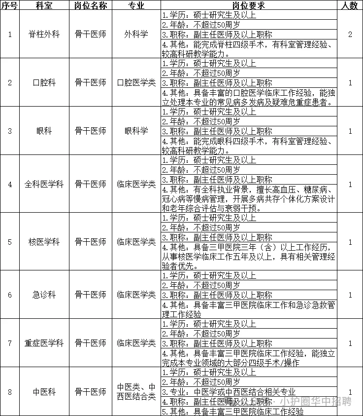 招聘岗位:护士、医师、技师等