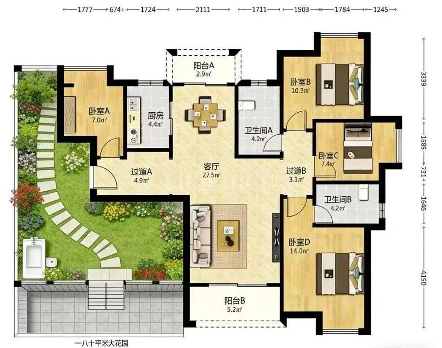 多一层,长沙市中心次新四房,80平花园+100平地下室,总价130万