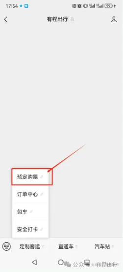 2、点击菜单:定制客运--预订购票;