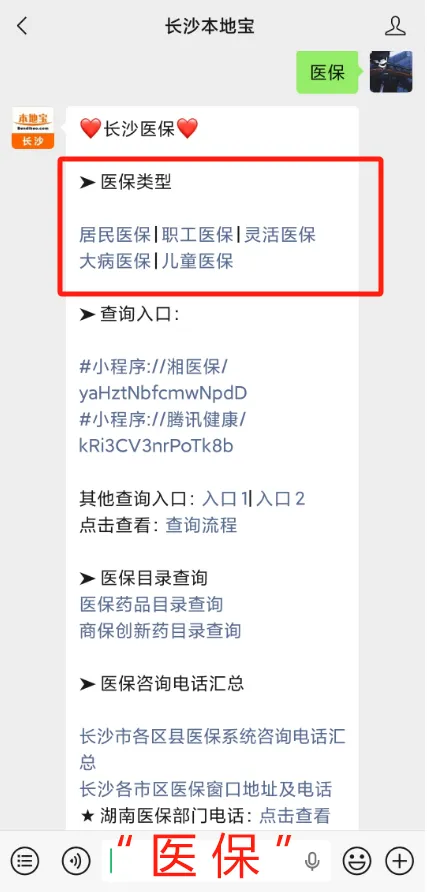 在【长沙本地宝】公众号对话框发送关键词: