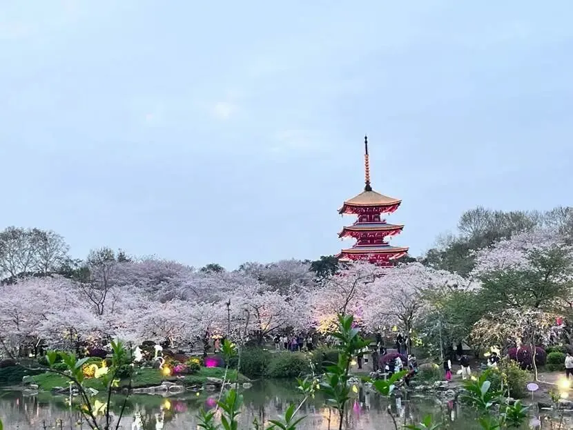 最佳打卡时段:白天上午9点半到11点半,光线刚好,能拍出花海的层次感,站在山坡上拍特别出片;夜樱晚上7点半到9点去,亮灯后氛围感很好,别赶6点半到7点的入园高峰;樱花音乐夜就晚上8点去,既能看樱花又能玩得开心。