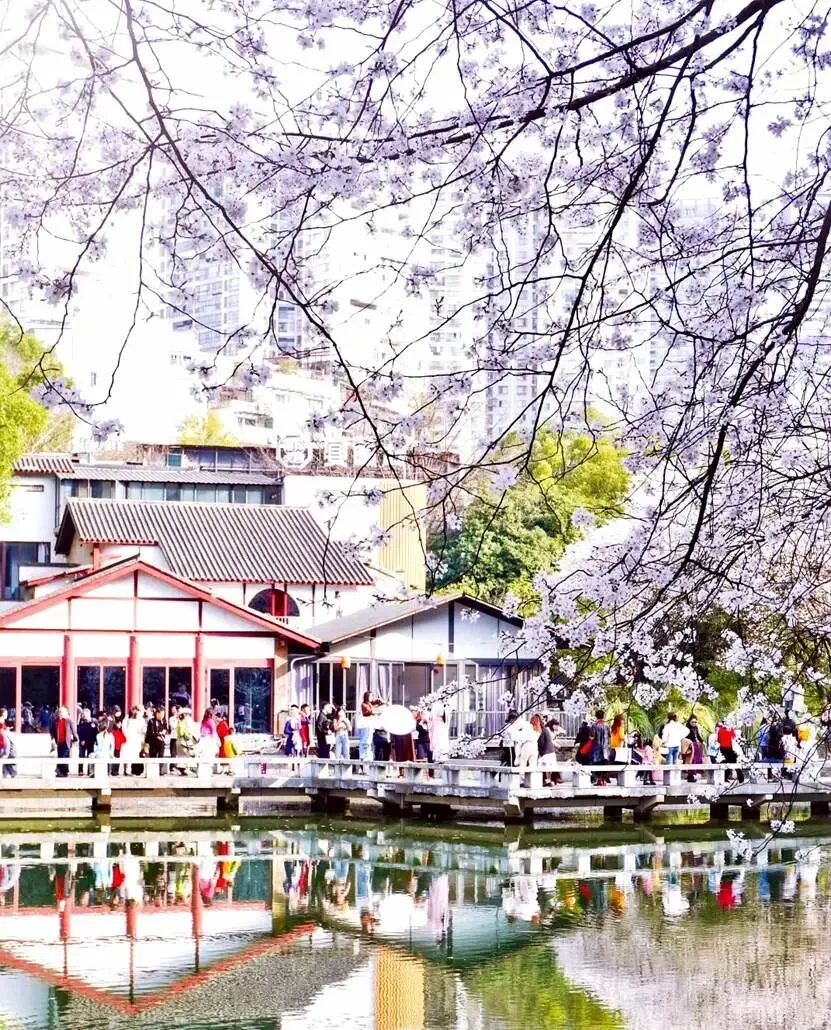 最佳打卡时段:穿汉服拍照早上8点到10点去最好,光线柔和,铜盆湖畔的樱花倒影拍出来特别好看;雨天去也很有感觉,10点到下午2点,冷雨配樱花,发朋友圈很吸赞;盛花期的时候,避开11点到下午1点的人流高峰。