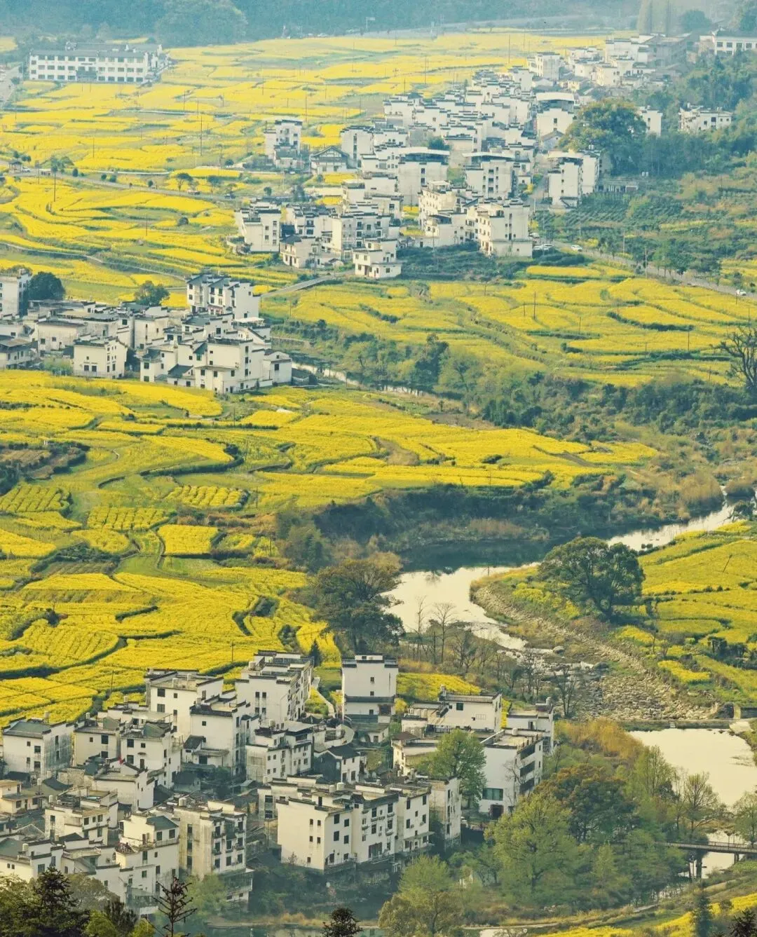 江岭油菜花田,是中国四大油菜花海之一、世界级摄影基地。层层叠叠的万亩梯田油菜花,与粉墙黛瓦的徽派古村、山间晨雾相融,有“天上人间”之誉;香港摄影师陈复礼《天上人间》、冯小刚《集结号》曾在此取景,还亮相过纽约时代广场。