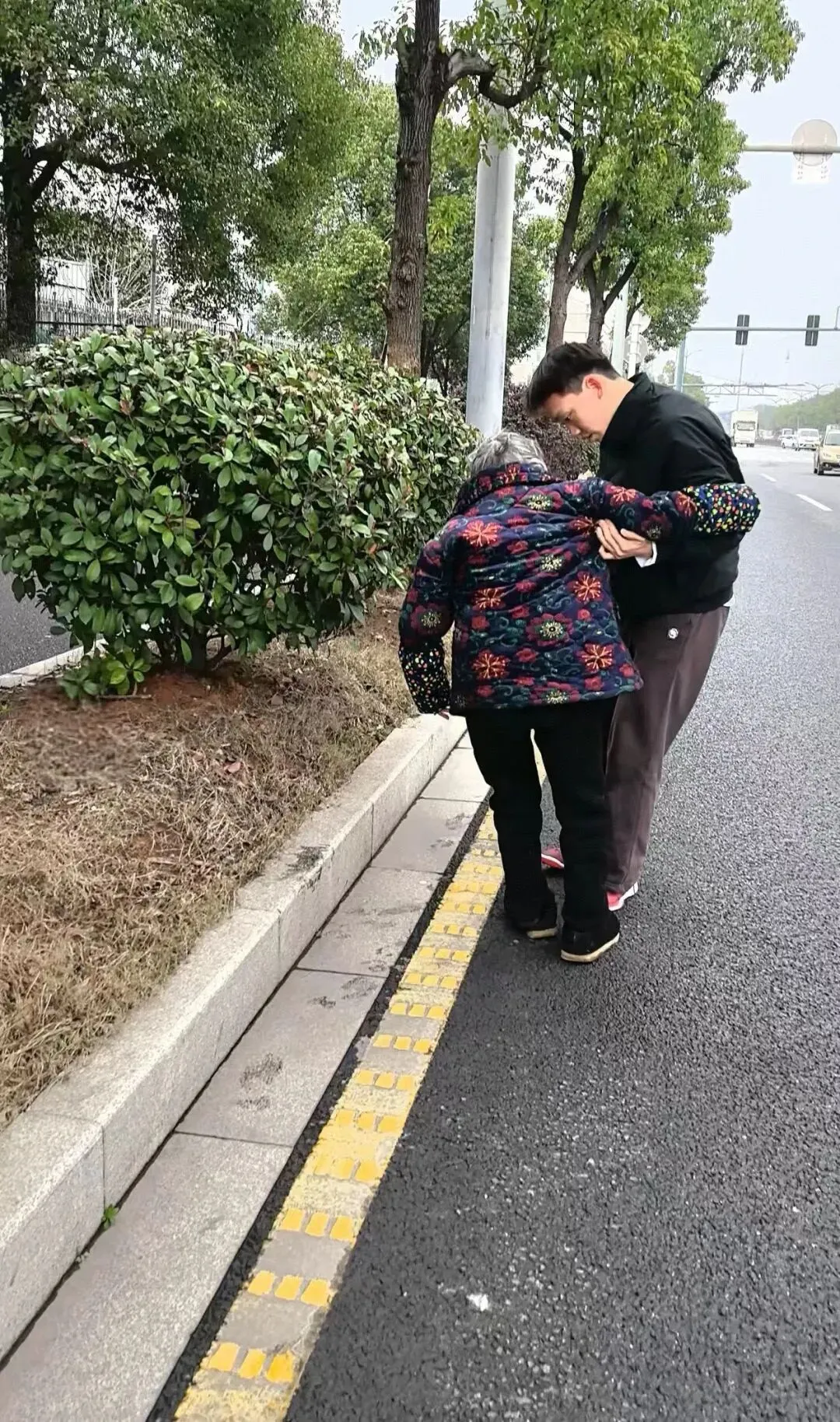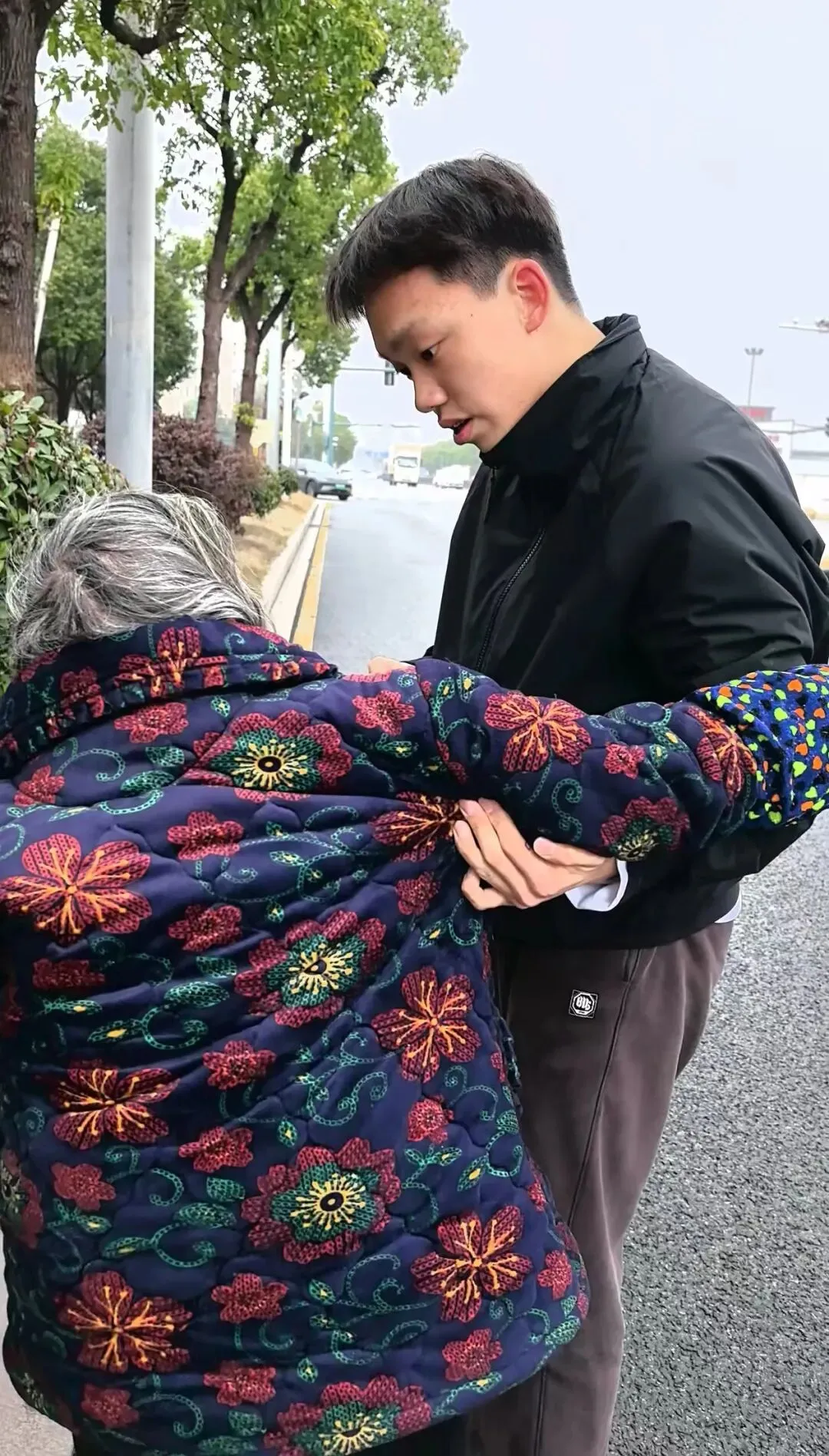 将老人搀扶至路旁花坛坐下后,吴宇轩并未急于离开。他弯腰轻声询问老人伤势,眼神里满是关切。担心老人年迈体弱,他主动掏出手机试图联系其家人,但老人因年事已高、神情恍惚,无法提供有效信息。吴宇轩没有放弃,又小心翼翼将老人转移至人行道安全地带,并反复确认其身体状态。直至老人能平稳行走、脱离危险,他才默默转身离开。少年俯身的温柔、搀扶的力度、离去的背影,无声诉说着“善”的温度,让初春的街头暖流涌动。