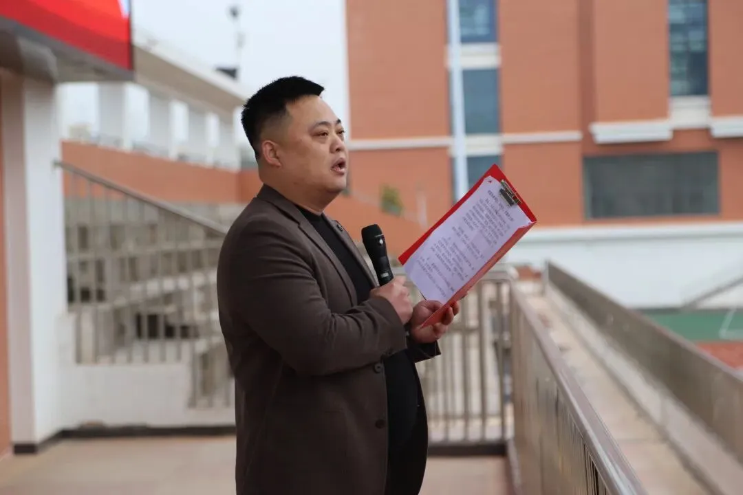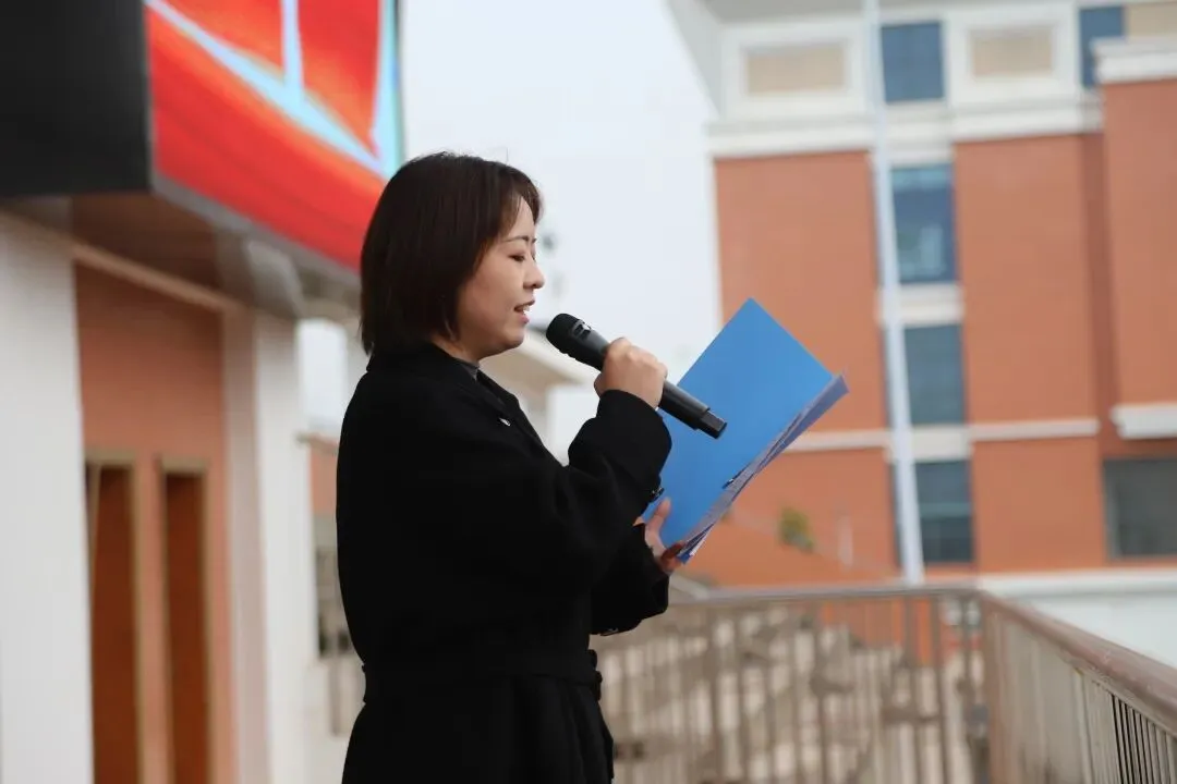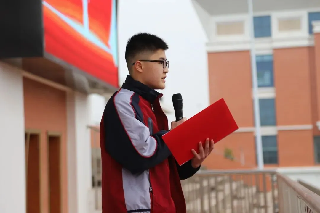 随后,学生代表 C2303班的章品佳同学发言。从他的身上,我们看到了初三学子奋斗的身影,更看到了自贸临空学子“一马当先”的锐气!心怀梦想,脚踏实地,这正是青春最好的模样。