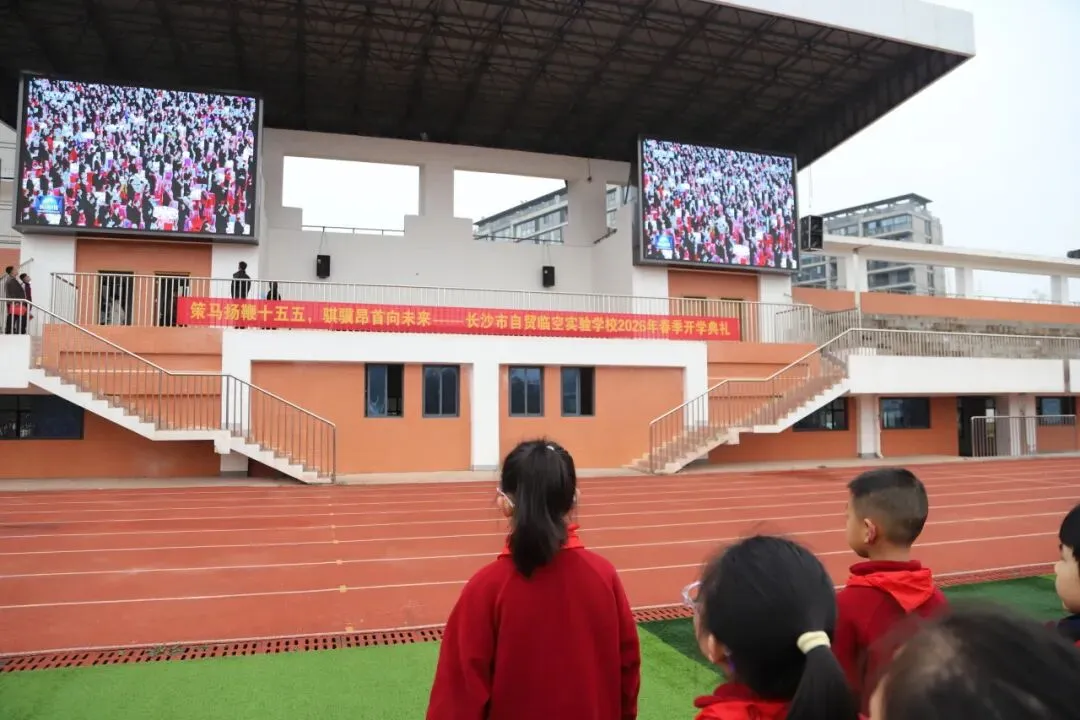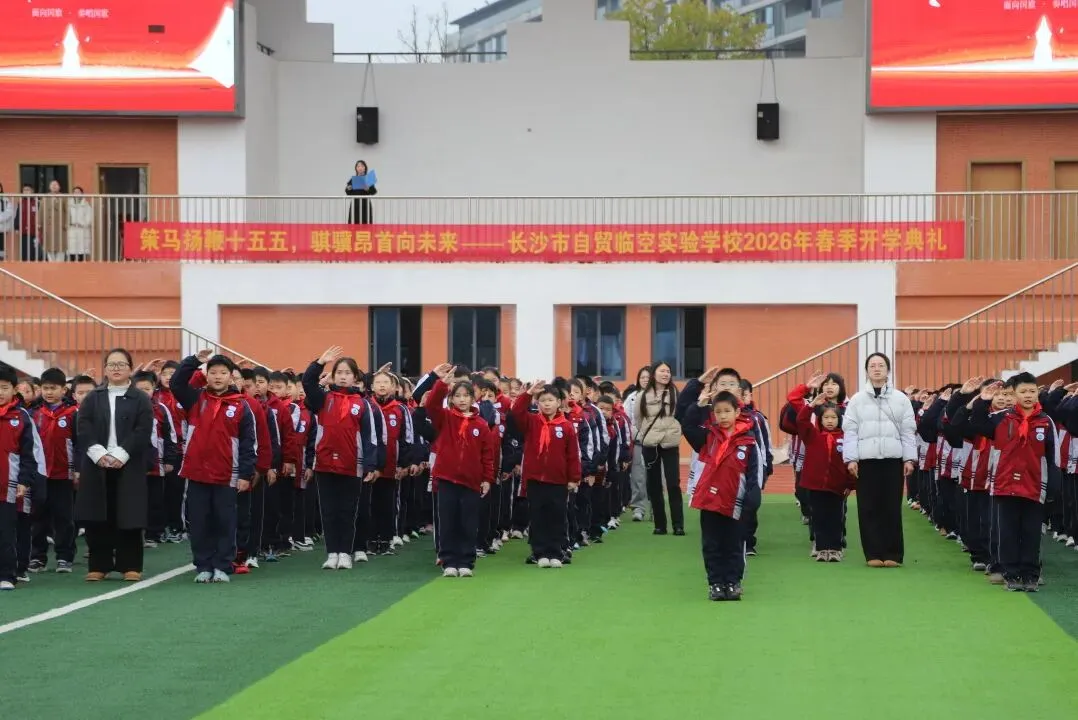 随着主持人赵红静老师温暖而有力的声音响起,长沙市自贸临空实验学校2026年春季开学典礼,正式拉开帷幕!