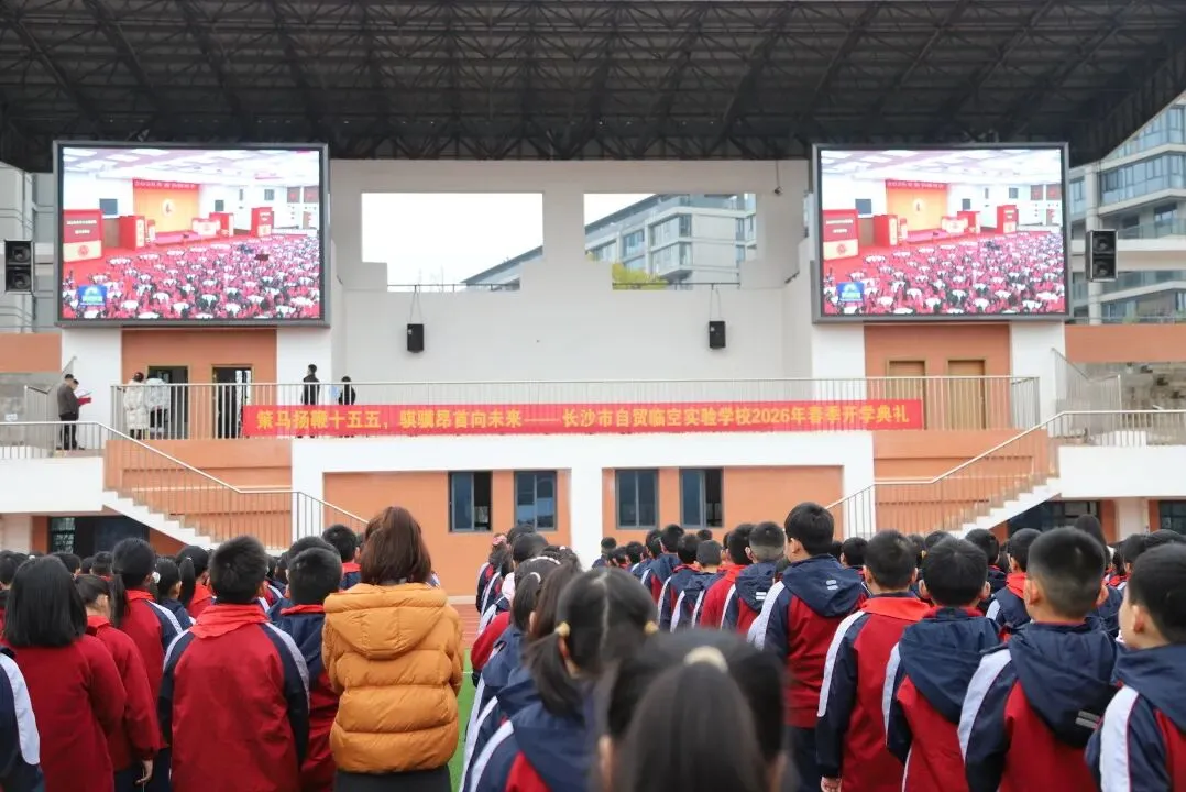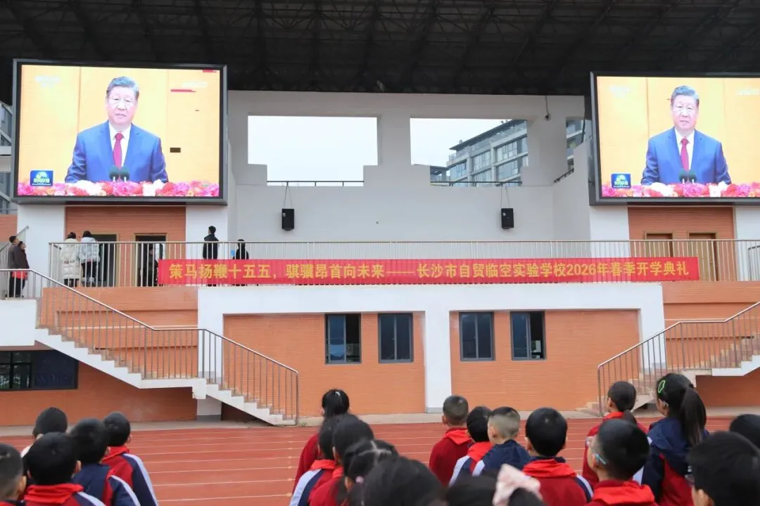 寒雪梅中尽,春风柳上归。三月的长沙,春意已然爬上枝头。在这生机勃发的时节,我们满怀喜悦与憧憬,再次相聚在美丽的自贸临空校园,共同迎来2026年春季开学典礼。