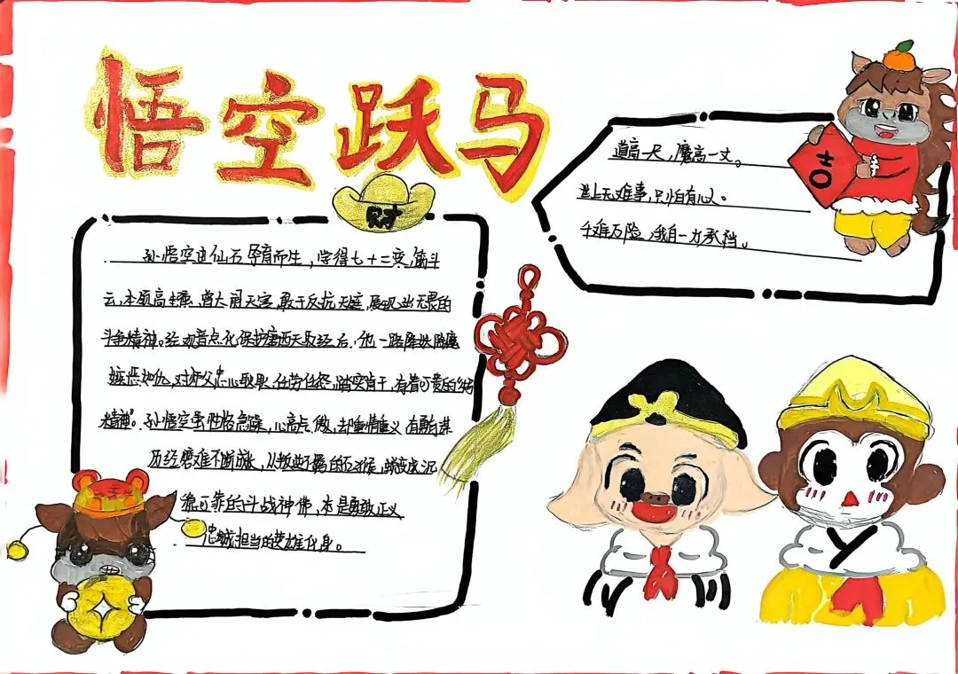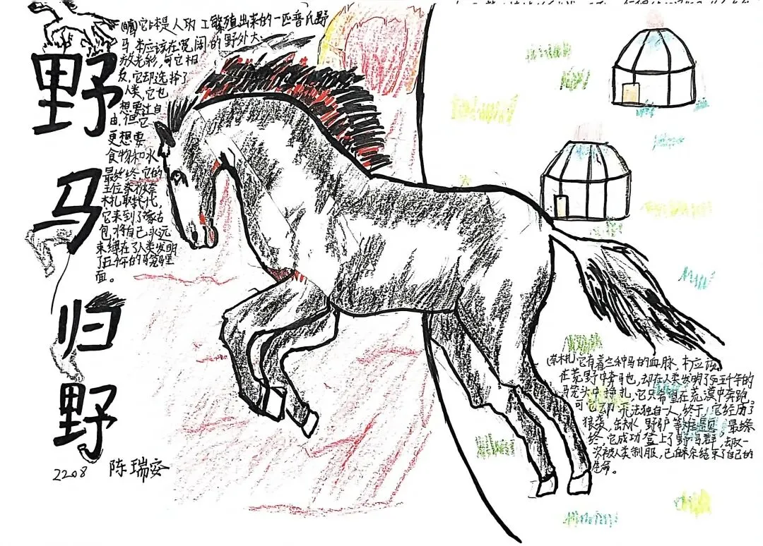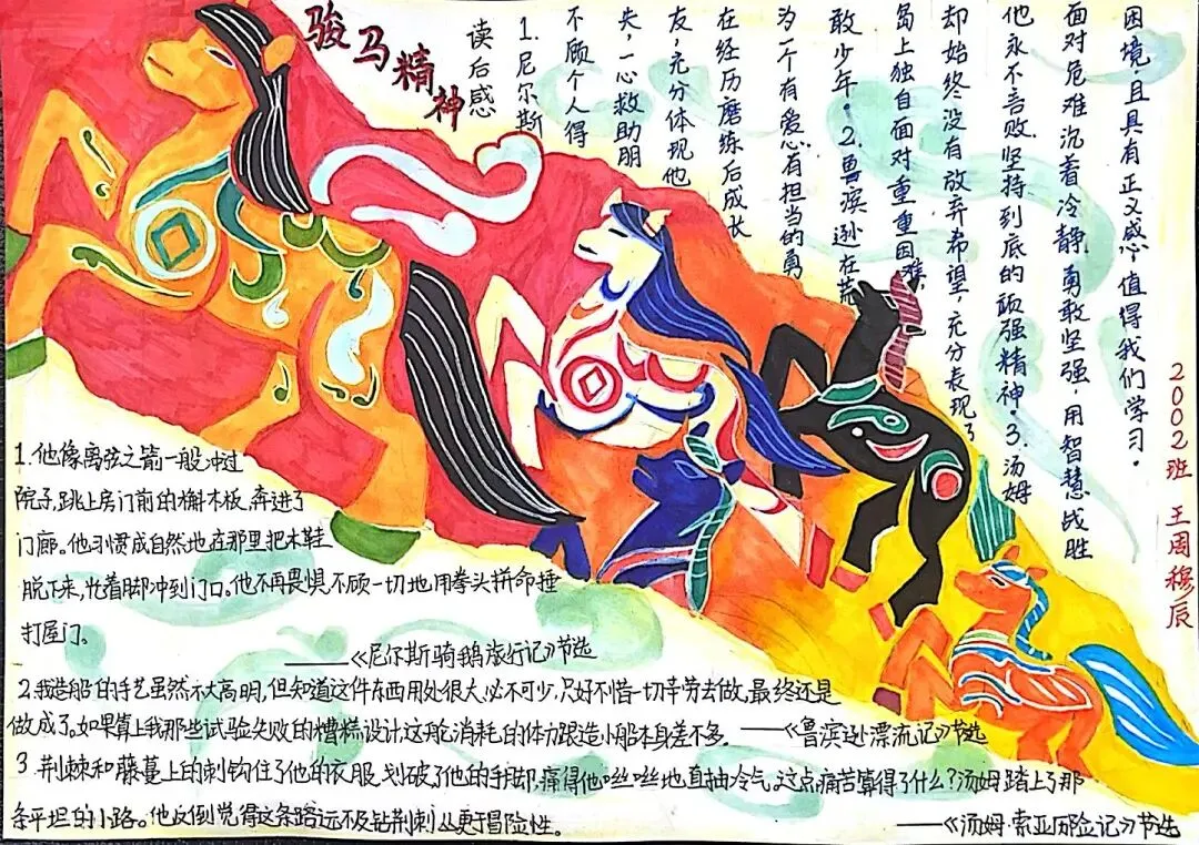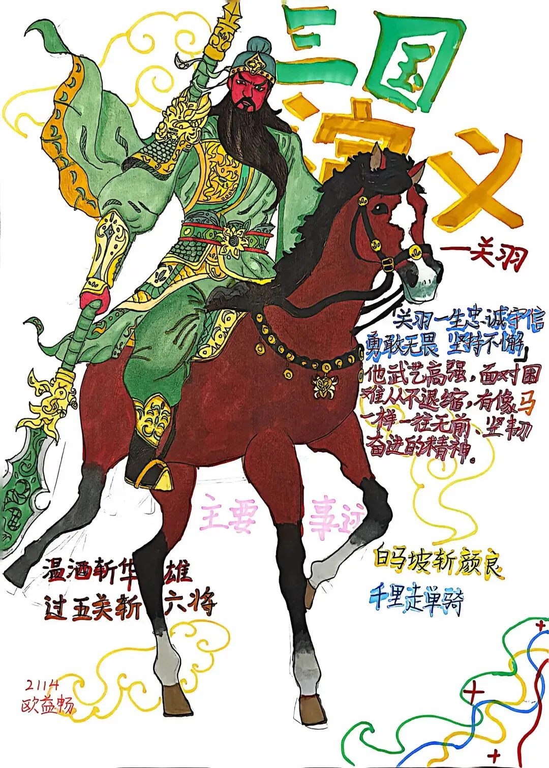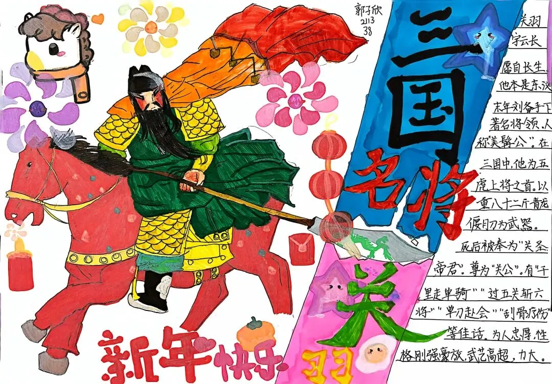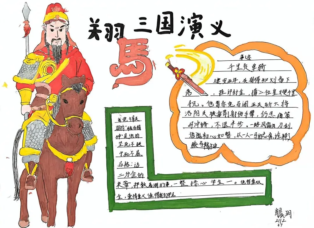 五年级的同学们走进《三国演义》《水浒传》《西游记》等经典名著,品读英雄人物,汲取精神力量。大家精心制作人物介绍卡,梳理人物事迹,感悟“骏马精神”的品格力量,在阅读与梳理中提升理解能力、概括能力与审美素养。一张张卡片结构清晰、内容充实,展现了高年级同学沉稳踏实、善思善学的良好风貌。