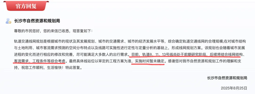 虽然官方已经明确,芙蓉南路、韶山南路预留了1号线、7号线南延廊道,可只留廊道不落地,依旧是画饼。