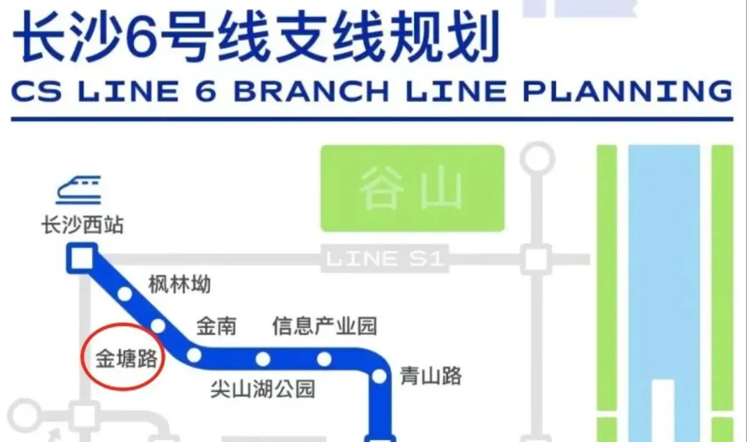虽然6号线经过麓谷,但离尖山湖软件园还有很长一段距离,S1号线虽划入轨道图,却迟迟没有实现市域化。