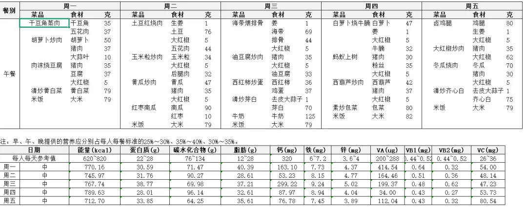 第二周营养食谱