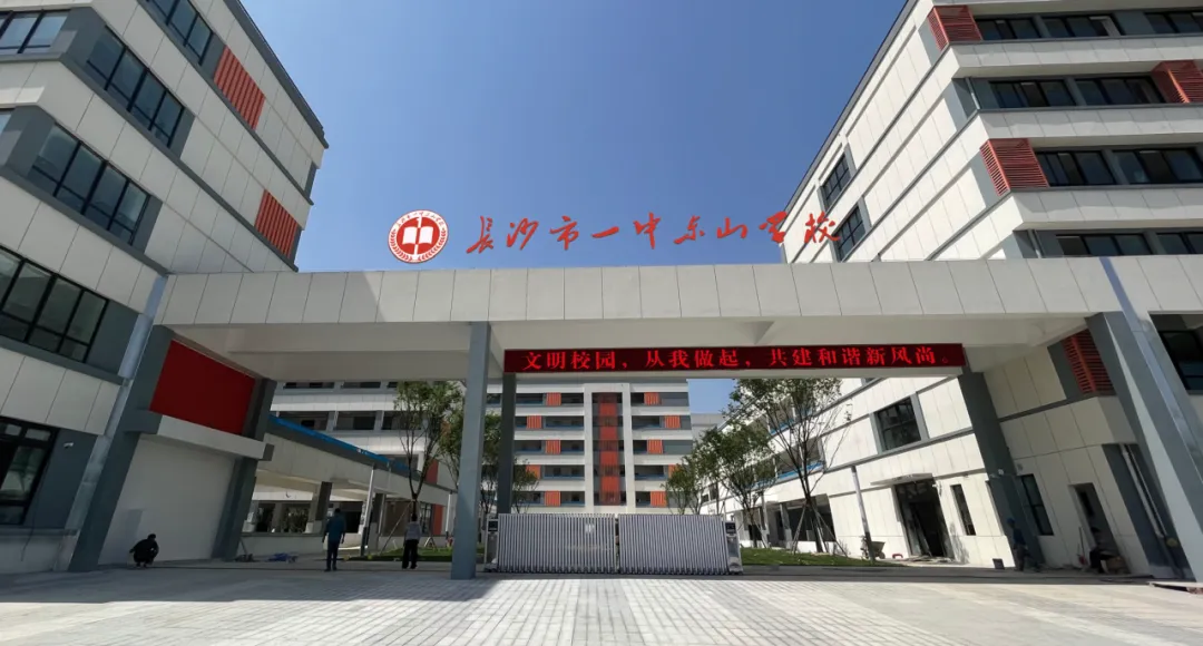 长沙市一中东山学校是雨花区人民政府和长沙市一中联合创办的一所高定位、高标准、高质量的现代化全日制公办九年一贯制学校。学校地处长沙市雨花区东山街道平阳南路与香樟路交汇处,初中部占地面积近60亩,规划初中班级36个,可提供学位1800个,是一中教育集团拔尖创新人才生源基地校。