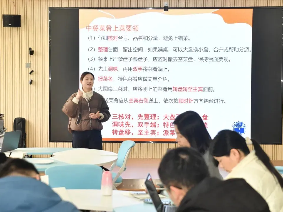 旅游服务与管理专业教师围绕《餐饮服务与管理》中餐菜肴服务,还原岗位真实场景。