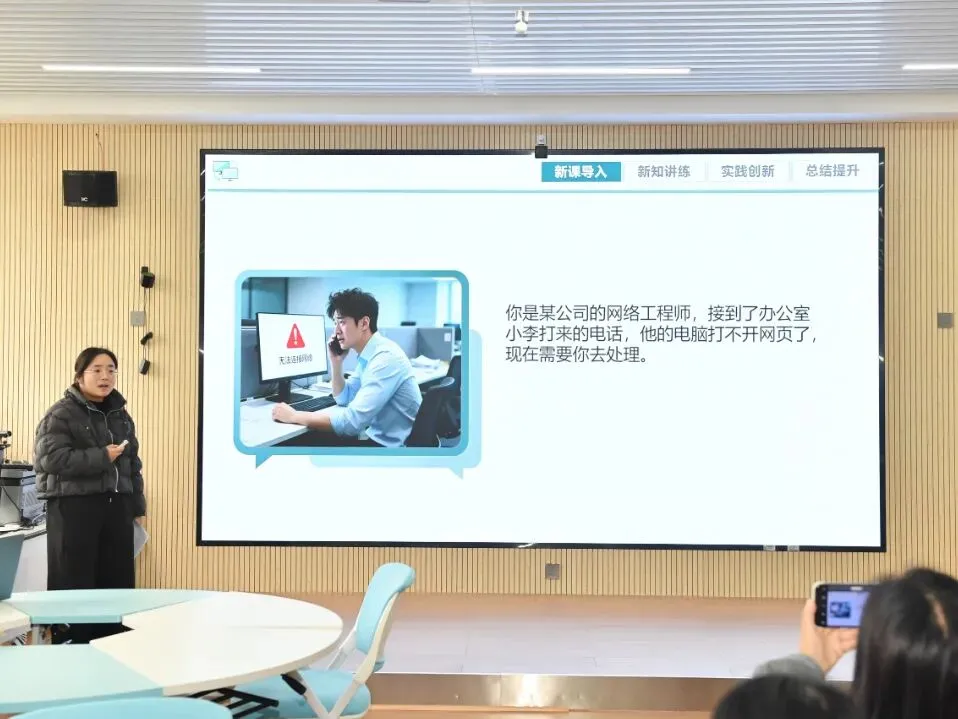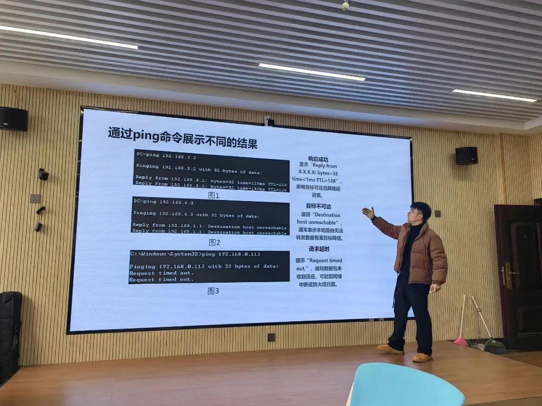 计算机网络技术专业教师讲解计算机网络ping指令,将数字化教学手段融入课堂。