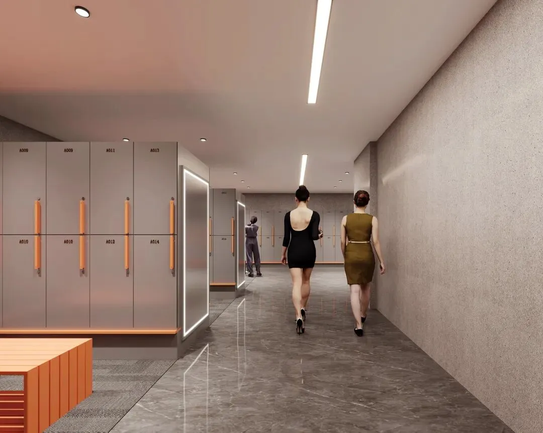 更衣间设有:拖鞋、棉签、戴森吹风机、品牌洗发水沐浴露等…储物柜、更衣柜每日清柜消毒,确保衣柜干净整洁