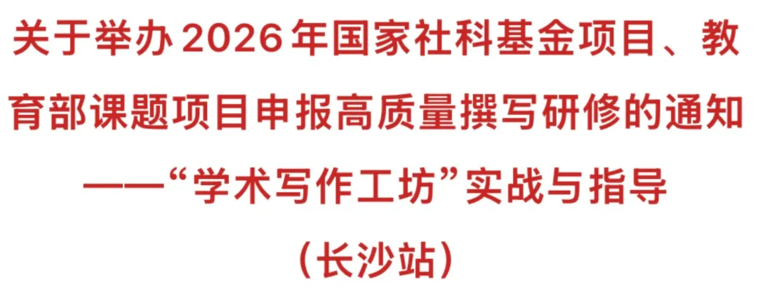 【长沙站】关于举办2026年国家社科基金项目、教育部课题项目申报高质量撰写研修的通知——“学术写作工坊”实战与指导