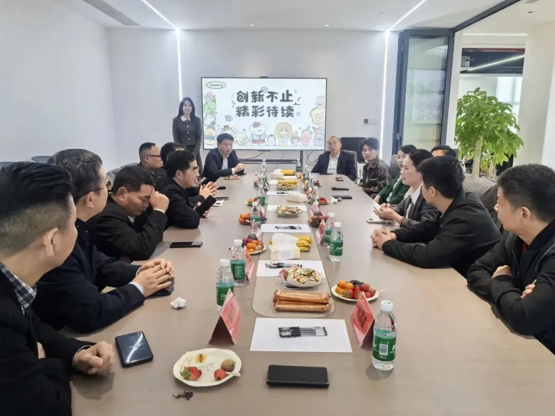 实地调研结束后,双方随即举行交流座谈会。钟毅股长致欢迎辞,对长沙同行的到来表示热烈欢迎,并重点介绍了南海区在印刷行业管理经验、政策扶持等方面的探索与实践。我会会长罗松波介绍了南海印协在服务会员、推动行业规范化发展等方面的工作情况。座谈交流结束后,调研组一行前往哇赛优尚(广东)品牌管理有限公司参观。作为一家深耕文创行业近30年的品牌企业,哇噻优尚集原创IP开发、设计生产、版权运营于一体,拥有自主品牌及多个原创IP,是迪士尼官方认证工厂。公司负责人详细介绍了企业发展历程、产品矩阵及市场布局,并就调研组关心的问题一一作答,现场互动气氛热烈。