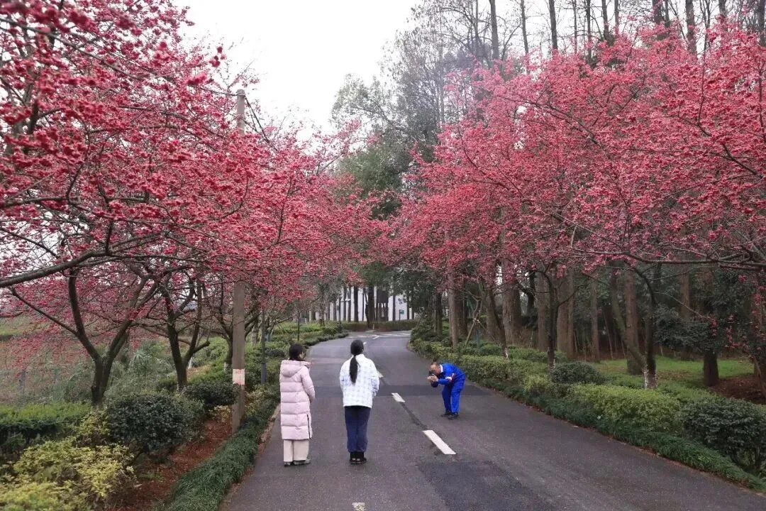 春风一吹 晓园公园 的樱花如约而至一树樱粉是独属春天的温柔