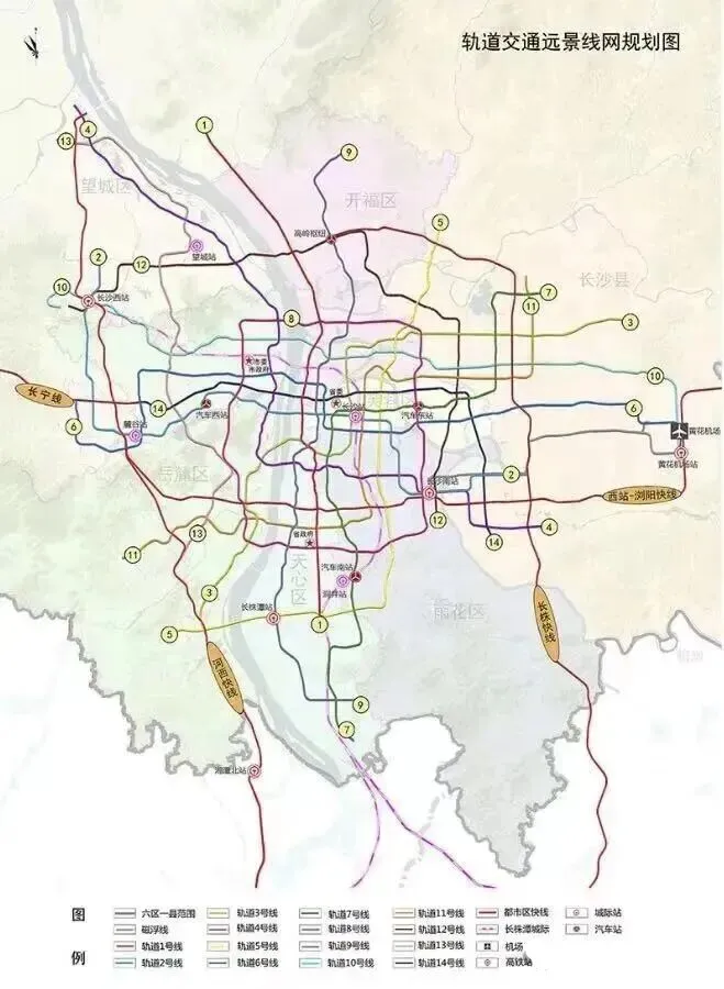 会议同时明确,长沙将加快建设“四环六射”高快路,拉开城市骨架;确保2030年地铁运营里程突破300公里。