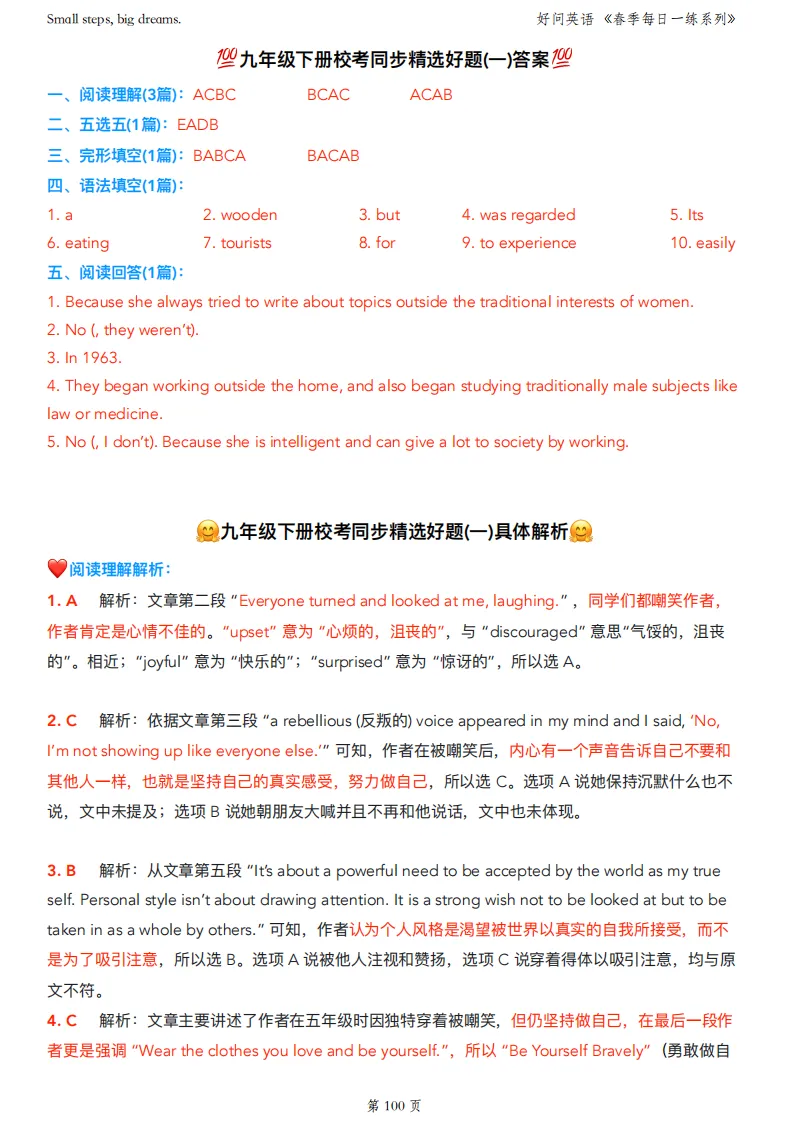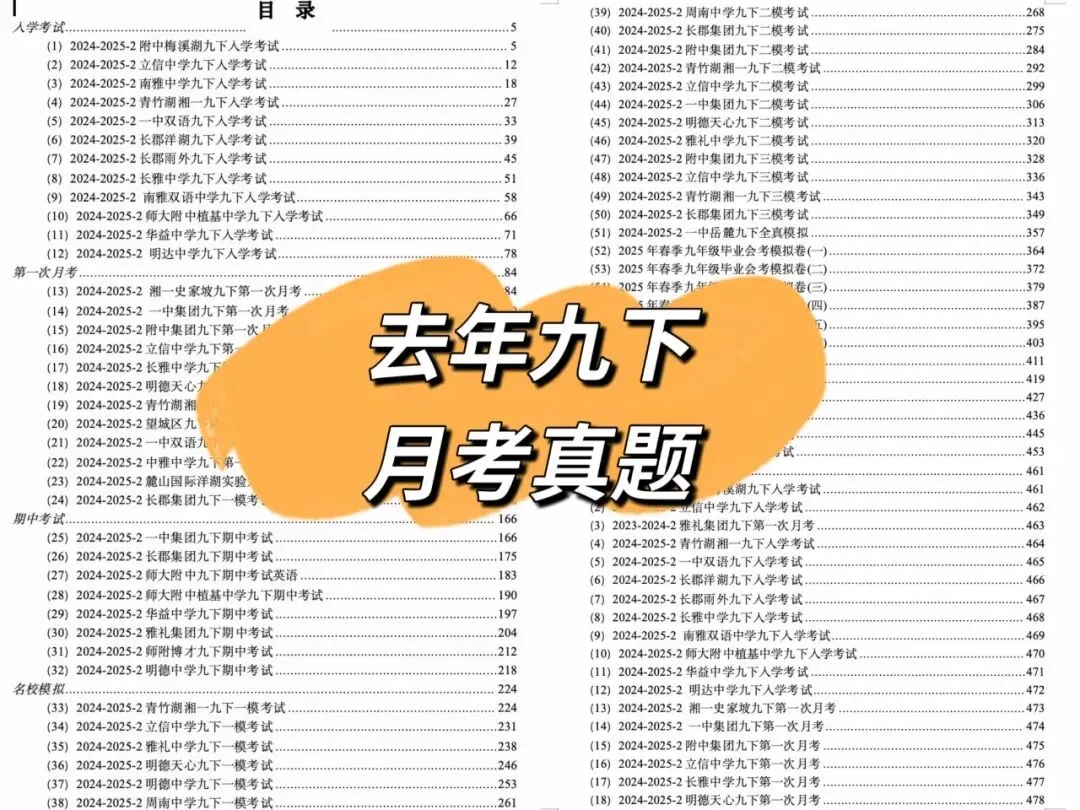 我去年陆陆续续把九下月考真题卷全部做了一遍,把里面的易错题、难题、高频考点统统挑出来,重新整理成一套套试卷,直接给孩子用,每道题都配有详细解析。