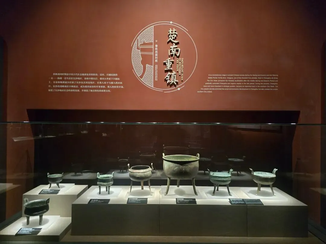 春秋战国时期是中国古代社会激烈变革的阶段。这时,百越民族的一支——扬越一直生活在长沙地区。春秋中期以后,楚国大举南下开疆拓土,至春秋晚期逐步控制了长沙及其周边地区。在楚人南下与越人的对抗中,长沙的战略地位不断提高,成为楚国南部的军事重镇。楚人的经营开发,促进了长沙地区社会经济的发展,并创造了独具特色的南楚文化。