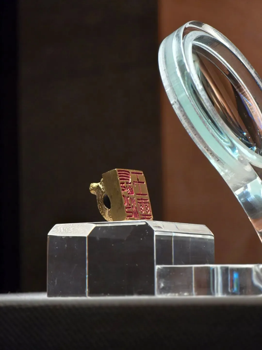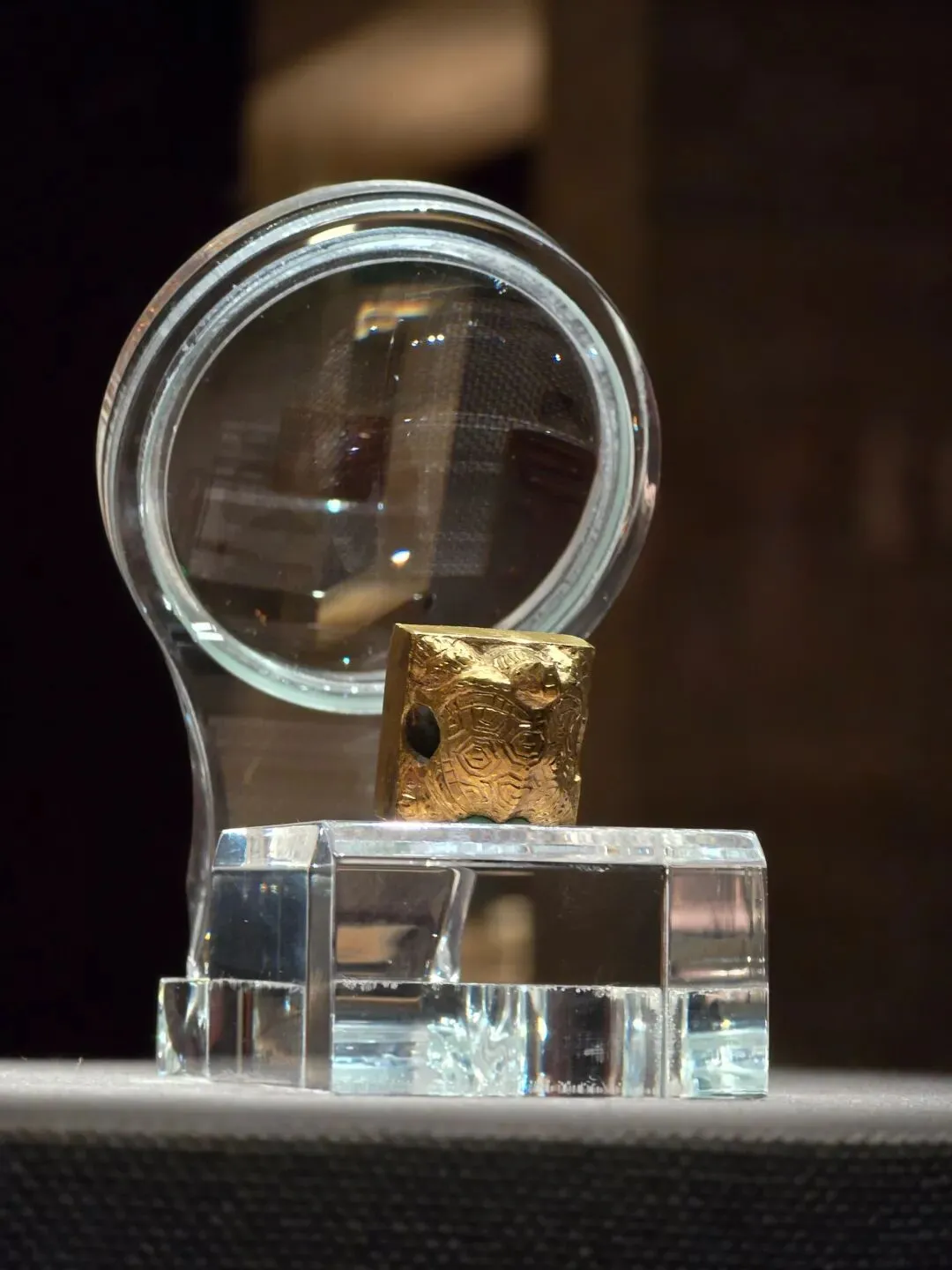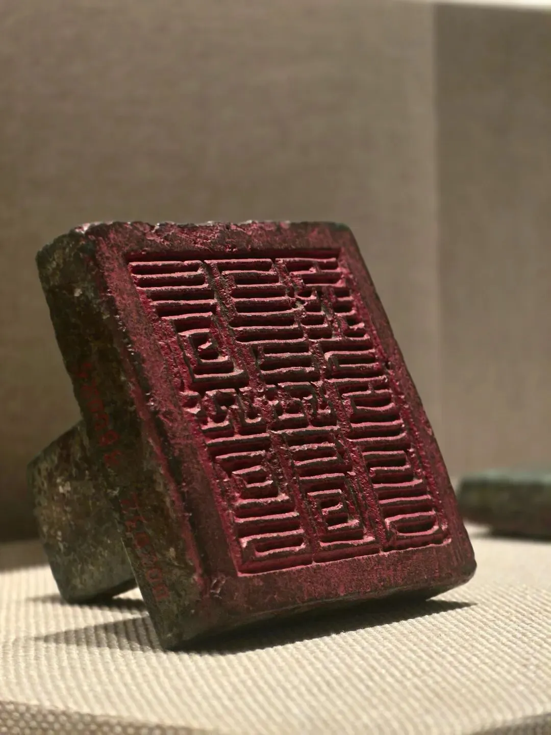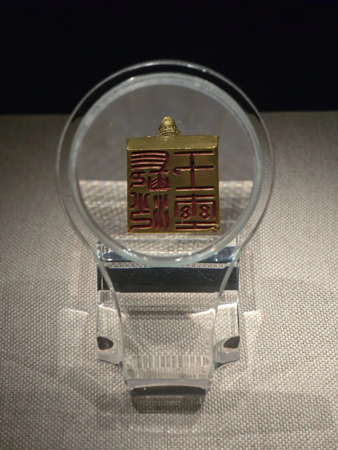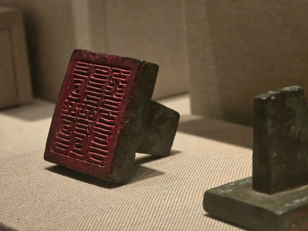 金质龟钮,方形,边长2.2厘米,重90克。印面阴刻篆文“长沙王玺”四字,书法朴实大方。钮龟俯卧盘踞于印台之上。龟腹下有圆穿以系绶带。