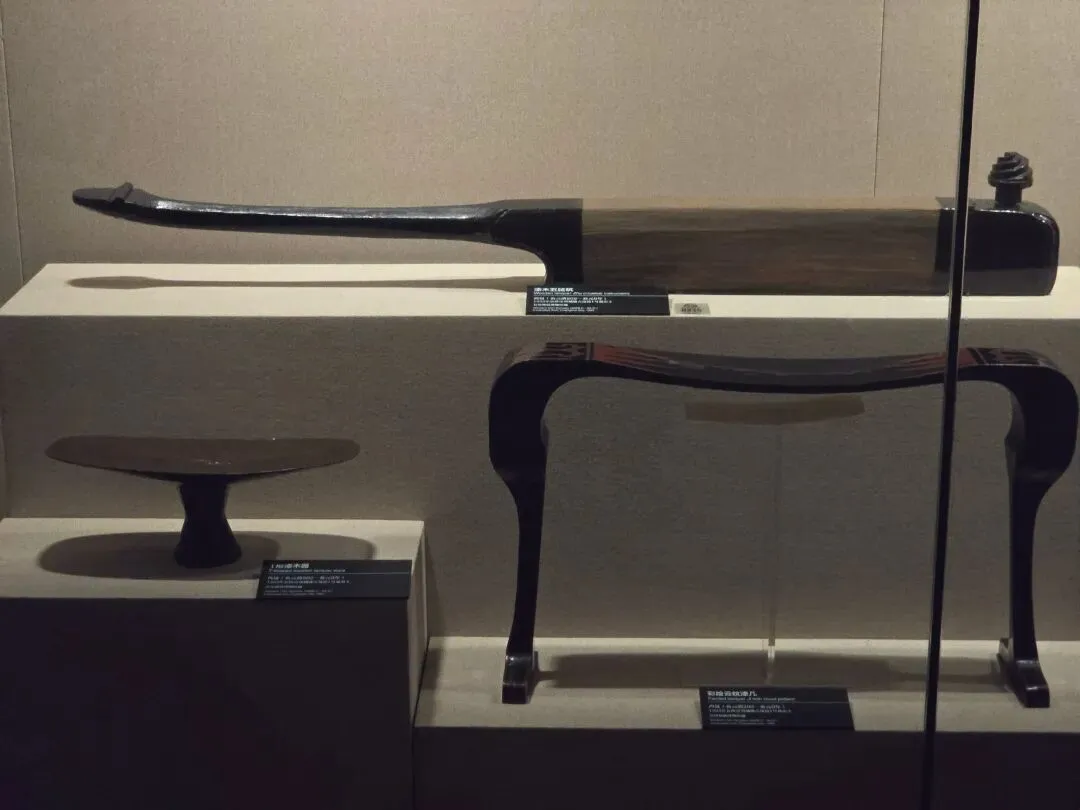漆木五弦筑、T形漆木器、彩绘云纹案几