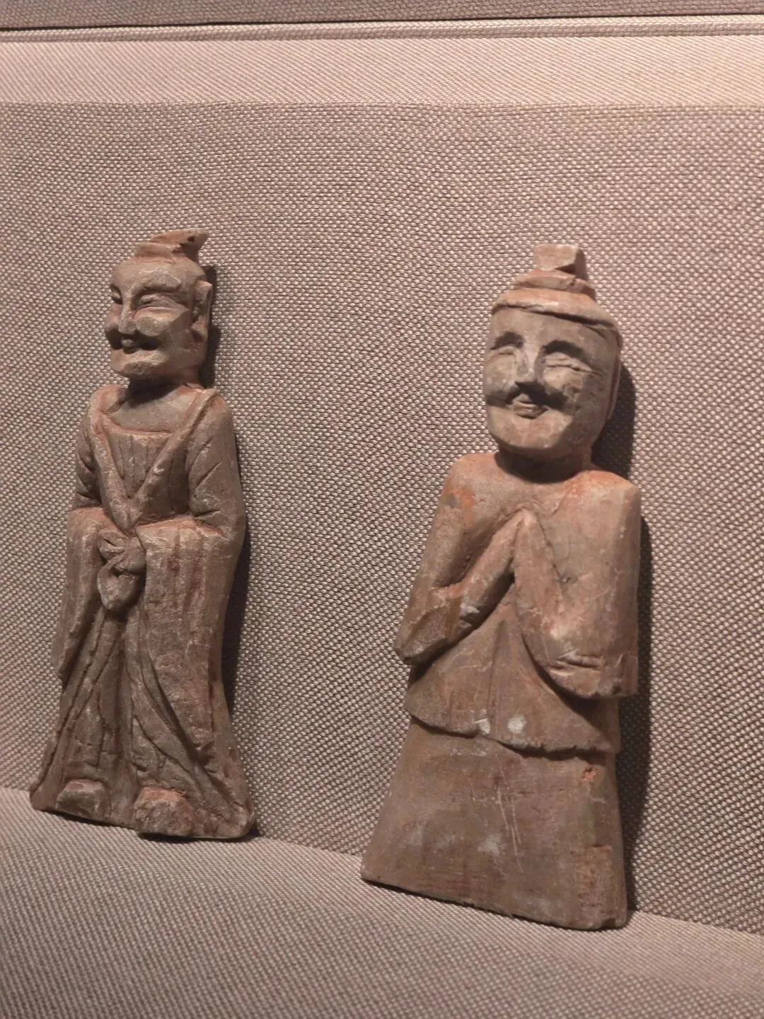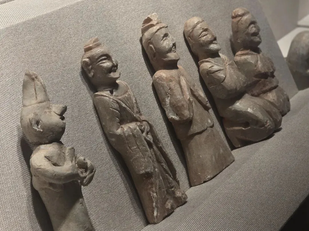 此组滑石人物俑,均由整块滑石雕刻而成,石质细腻,刀工粗犷豪放。头面清晰地雕刻出人物的五官轮廓及表情,显示出古代工匠对人物面部结构的深刻理解和娴熟的雕刻工艺。滑石俑表现的服饰种类较为丰富,有深衣、短襦、袍、方头履等多种形式,为研究魏晋时期服饰形态提供了重要资料。