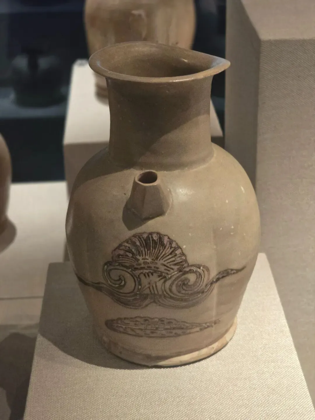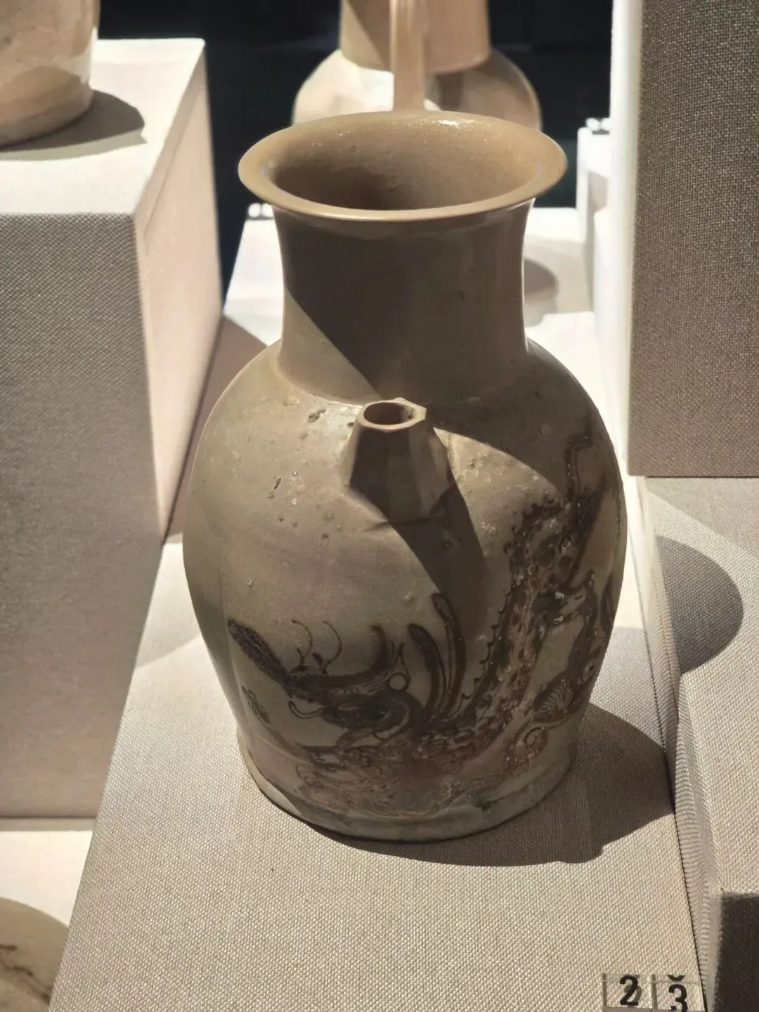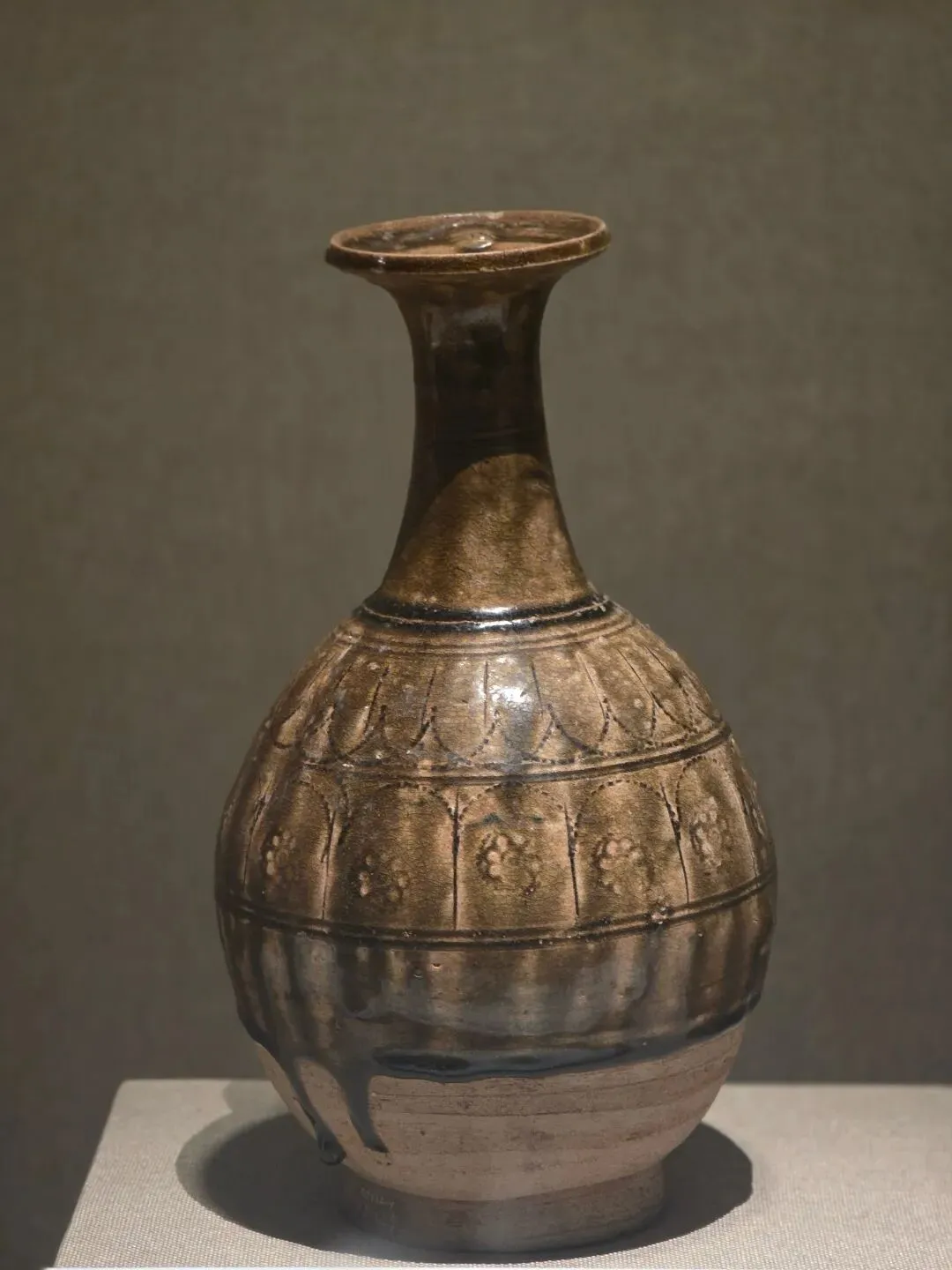湘阴窑褐釉覆莲团花纹瓷瓶