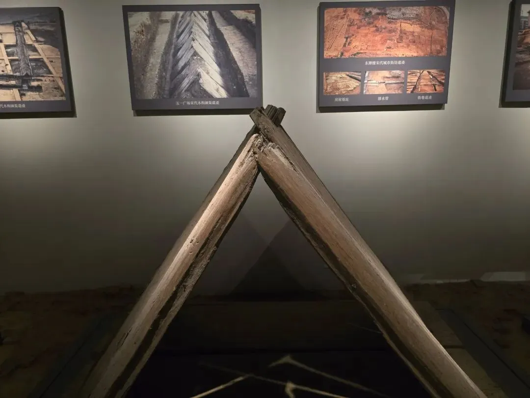 2004年天心区坡子街出土。涵渠残长38米,高约1.2米,断面呈三角形,由底板及两边侧板搭构而成。底板两端开凹槽,侧板下部嵌于凹槽内,顶部相交搭合。侧板两侧有边搭榫,板与板之间拼接扣合,构成长长的三角形涵渠。该涵渠规模十分庞大,为南宋时期潭州城内的地下给排水设施。