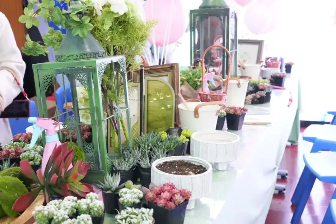 大家化身“园艺师”,小心翼翼地选苗、培土、配色、装饰。铺上彩色的砂石,放一只小蘑菇,搭一个小篱笆……不一会儿,一个个独具匠心的微景观便诞生了。