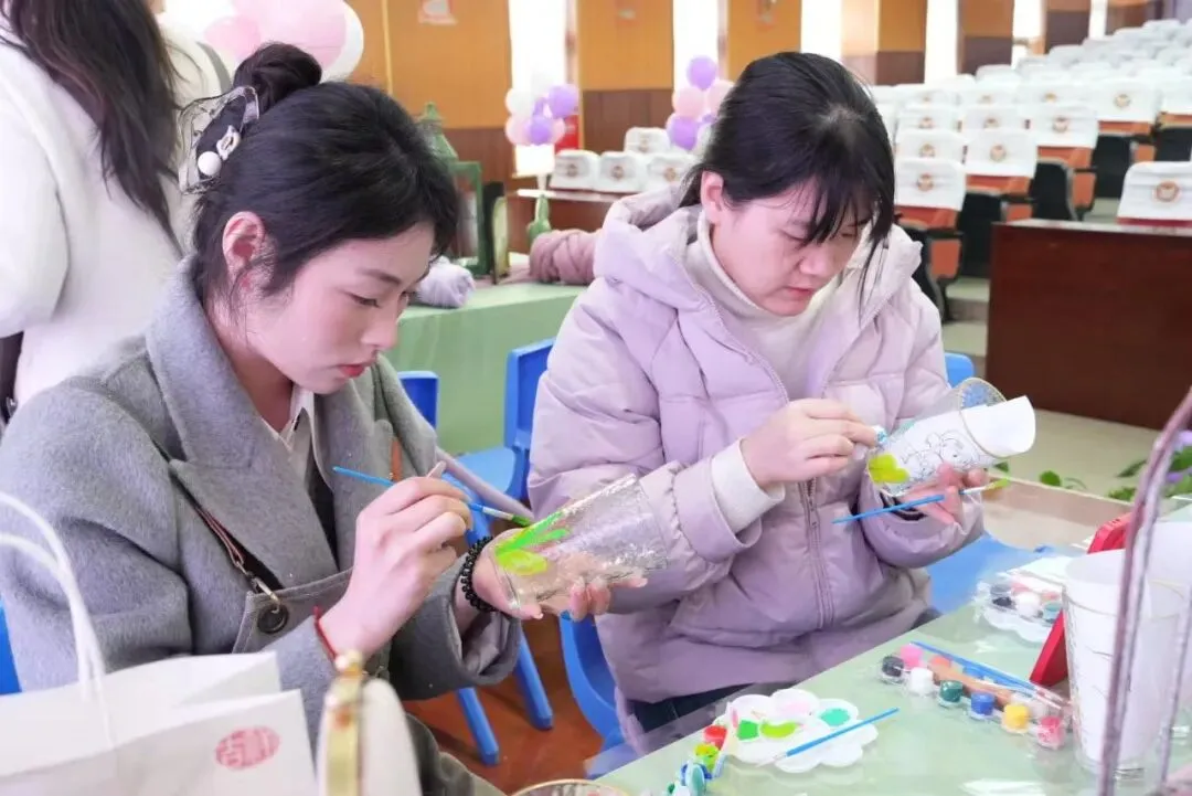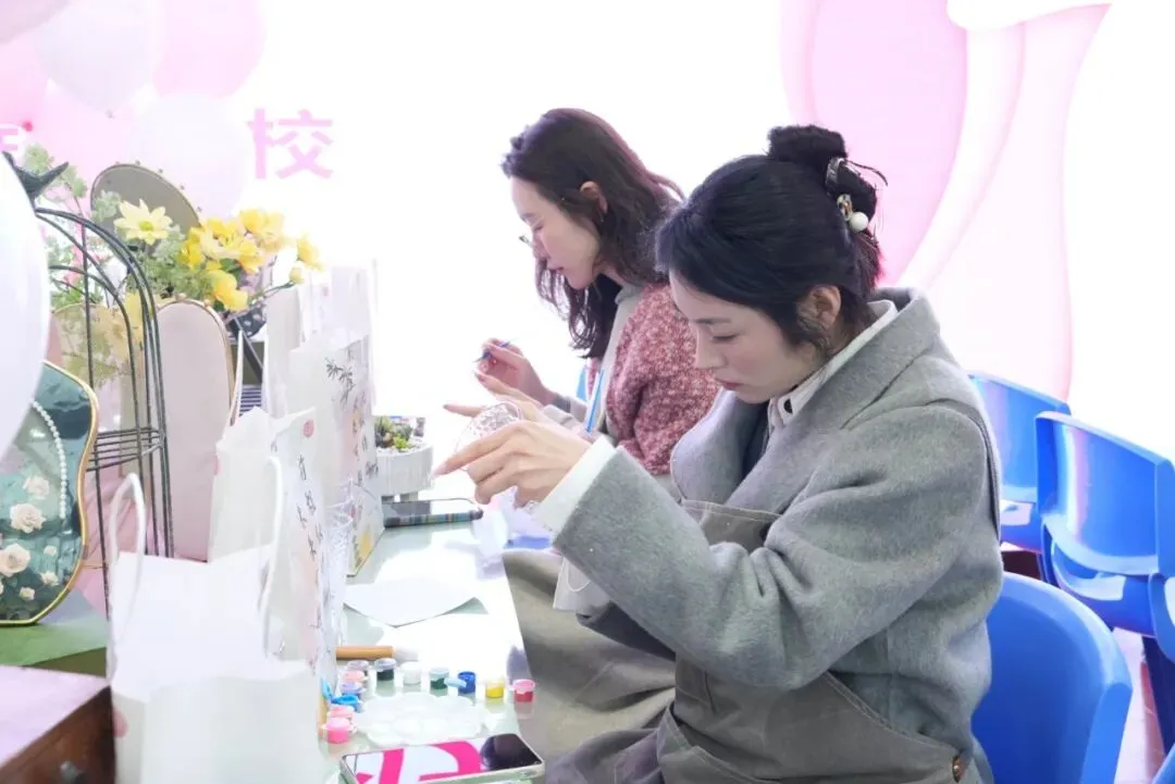 这一天,平日里忙碌于三尺讲台的她们,放下了教案与粉笔,化身专注的手作人。在玻璃杯上描绘春光,在绒线里编织温暖,在泥土中栽种绿意。现场笑声不断,创意飞扬,共同谱写了一曲属于长沙市明德金鹰学校女教职工的春日赞歌。