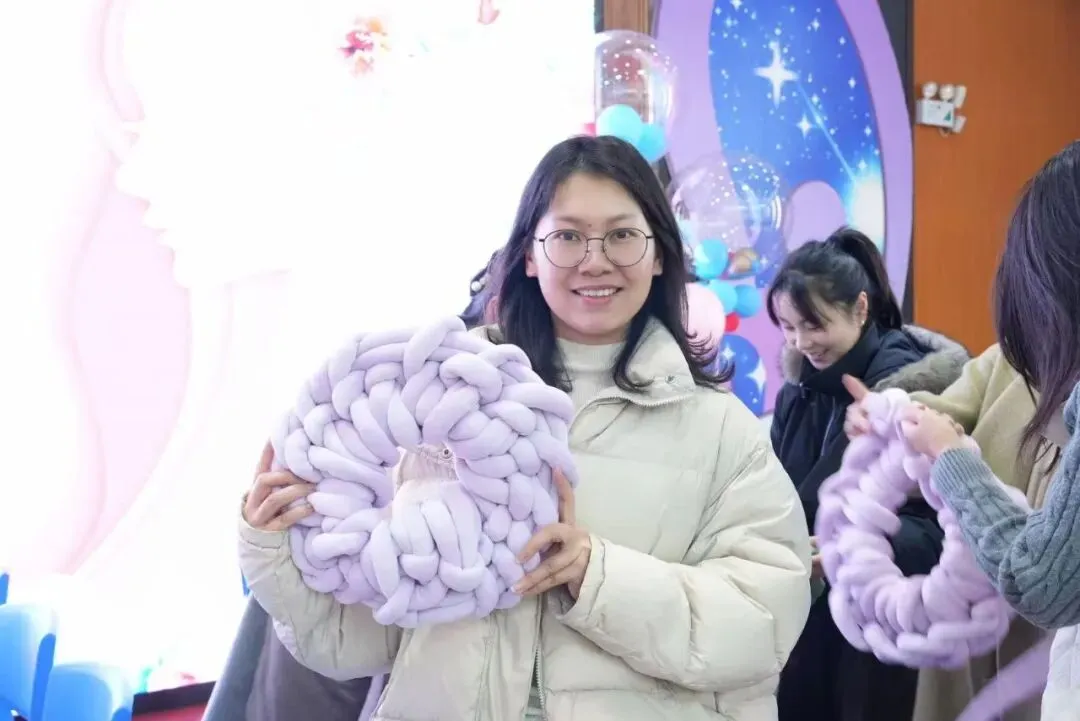 新手们虚心请教,熟手们热心指导。看着手中的线团一点点变成带有温度的织物,那份成就感溢于言表。这不仅是一个抱枕,更是长沙市明德金鹰学校姐妹们对自己的一份犒劳,是慢生活里亲手编织的温柔。