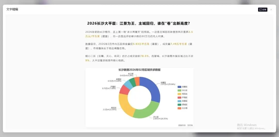 克而瑞·深度智联是地产人的“第二大脑”,房地产行业的首个AI AGENT。它不仅会思考分析,还会提供工作成果,擅长处理您工作中各种场景的任务,可以帮您完成多个复杂工作,是您最佳的AI助手。 2026年初的长沙楼市,正上演一场“冰火两重天”的戏码。一边是主城区的大平层新房价格“稳定”,另一边是远郊老破小降价80万元仍无人问津。