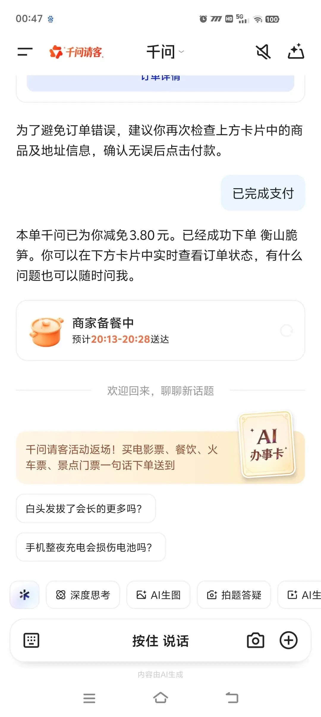 其实这不是千问第一次宠粉,此前春节发起的“30亿免单”活动,凭买奶茶、点外卖、订票等“AI办事”功能圈粉无数,让千问一跃成为国民级AI助手,活动期间全国用户更是喊了50亿次“千问帮我”,热度直接拉满👏