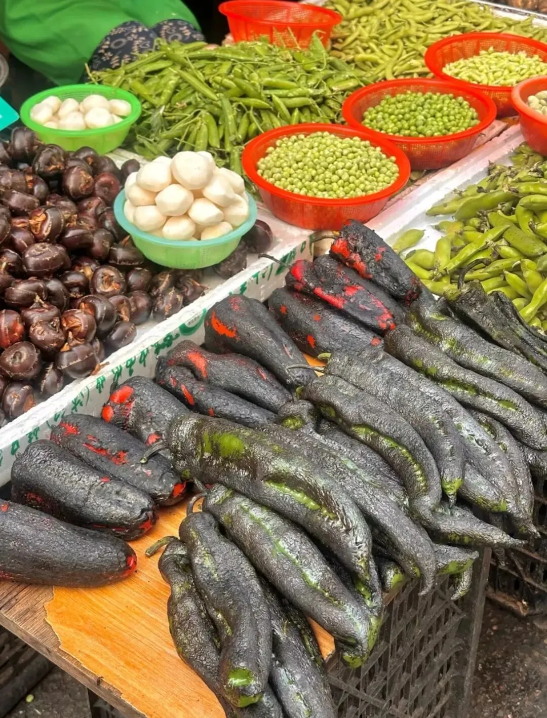 长沙的这个辣椒为什么黑乎乎的呀?青辣椒上面也是黑乎乎的,红辣椒上面也是黑乎乎的。是因为没洗干净就拿来卖吗?还是辣椒生病了?怎么会这样?还有图三的这些菜,为什么直接切好就卖呀,这样就能吃了吗?这就是传说中的预制菜吗?