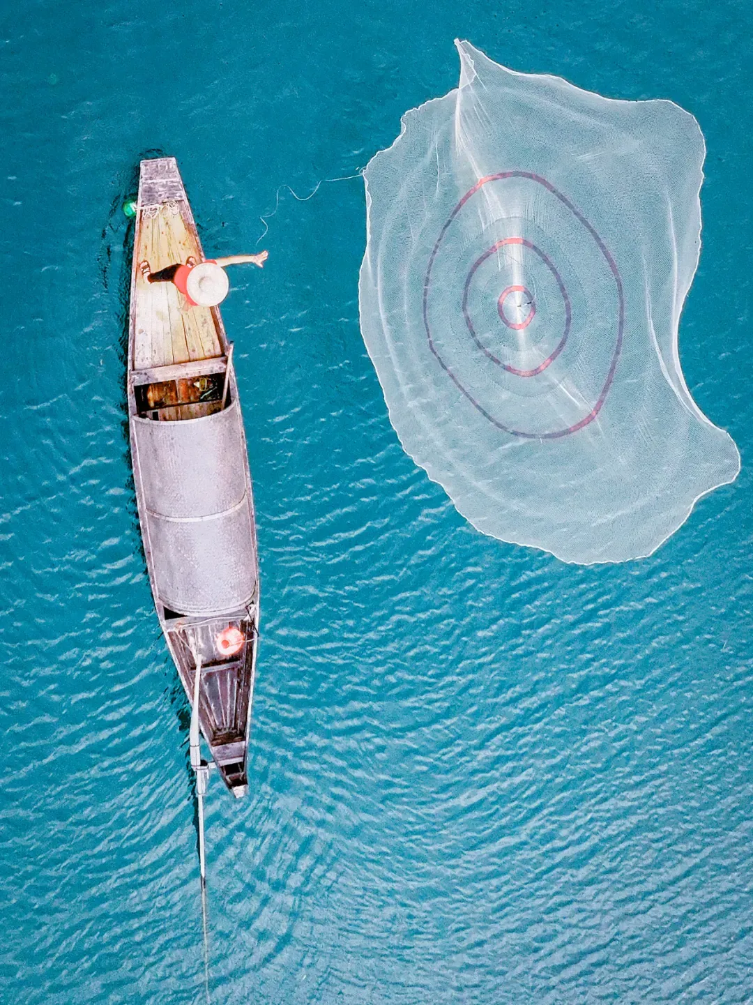 当第一缕晨光穿透江雾,渔夫驾一叶轻舟翩然行至江心,将渔网高高抛起,网在空中绽开成完美的圆形,又轻轻落入水中,激起一圈圈涟漪。