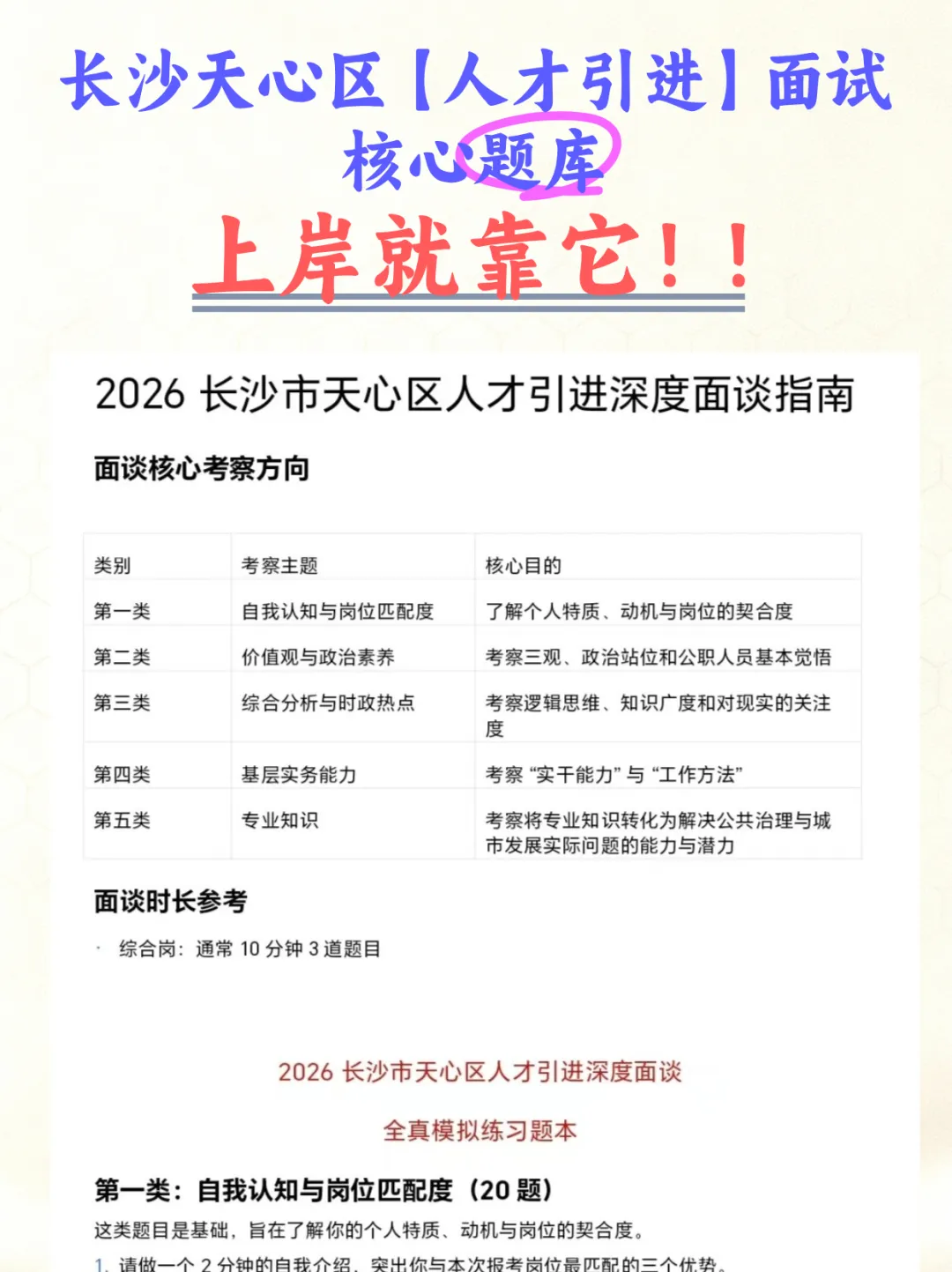 高频问题:对天心区发展(如文旅融合、营商环境、基层治理)的了解与看法;对 为人民服务、基层工作”的理解;如何看待加班、基层一线、服从安排等
