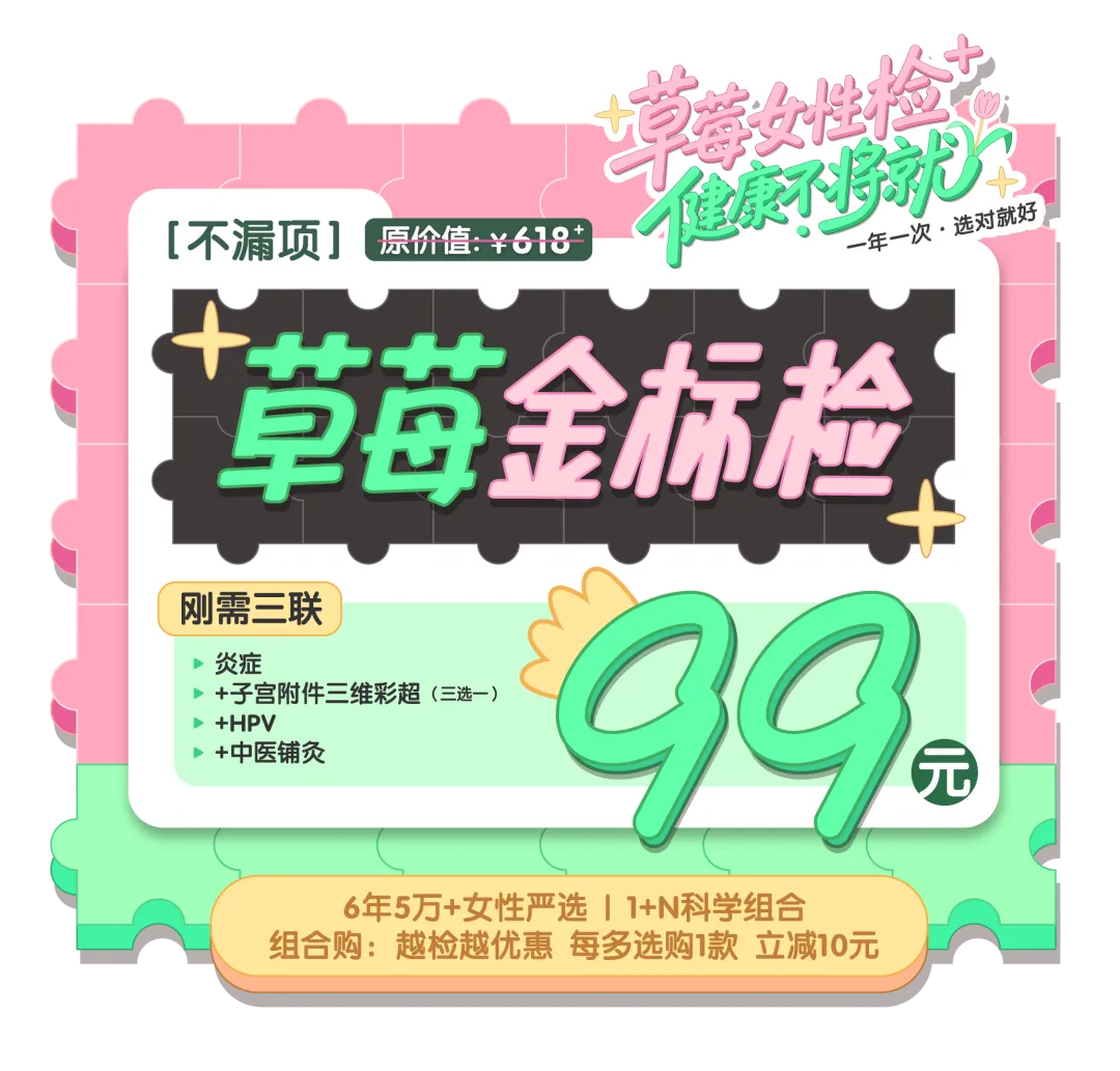 所以今年活动的核心,依然是女性最基础、最关键的组合——【不漏项】99草莓金标检·刚需三联