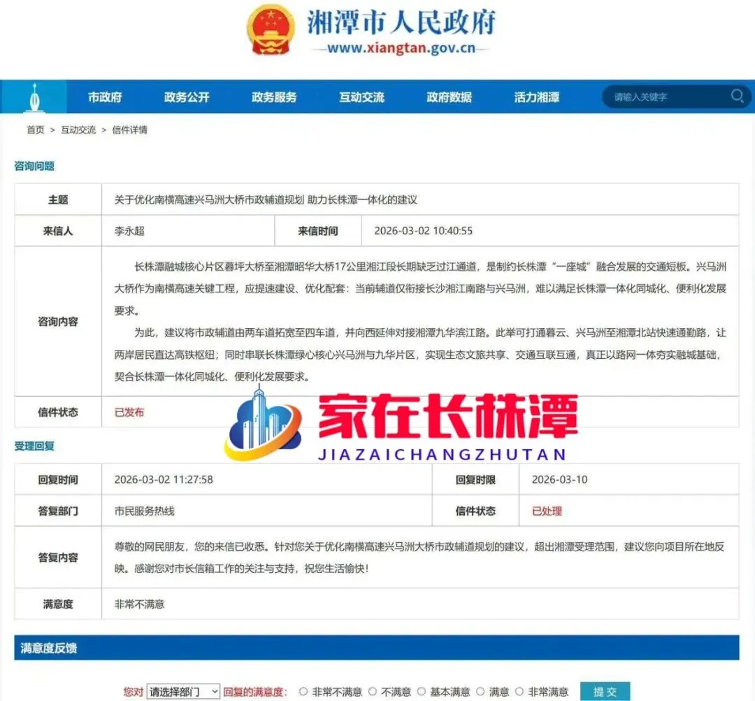 另一方面根据湘潭市国土空间总体规划(2021-235年)、长沙市国土空间总体规划(2021-2035年)等公开规划,南横高速跨江线位并无已规划的市政过江通道,本次南横线高速设计符合两市的国士空间规划。