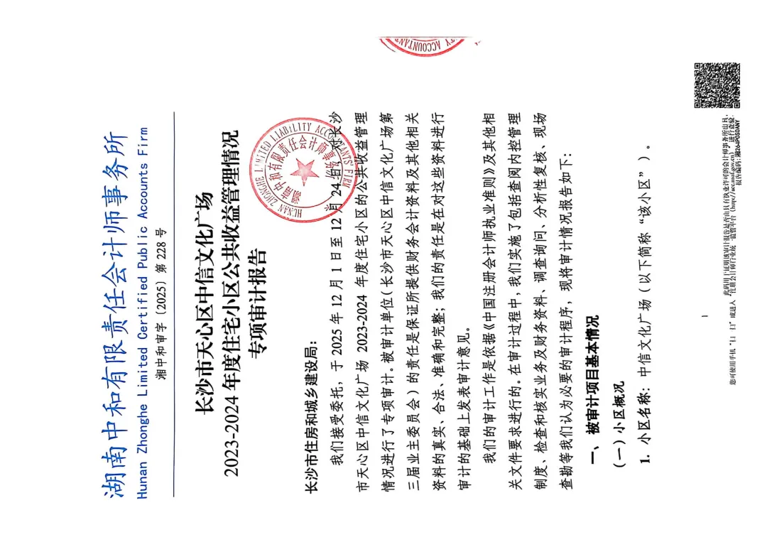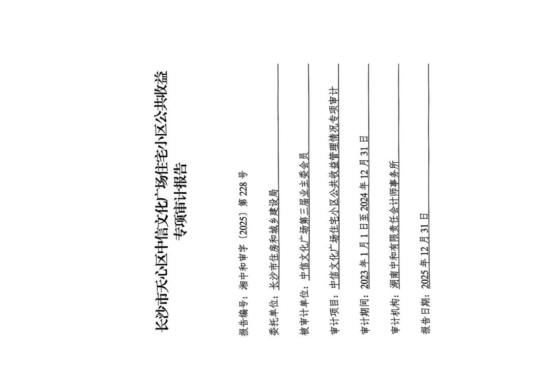 >转长沙市住建局对中信文化广场业委会的审计报告