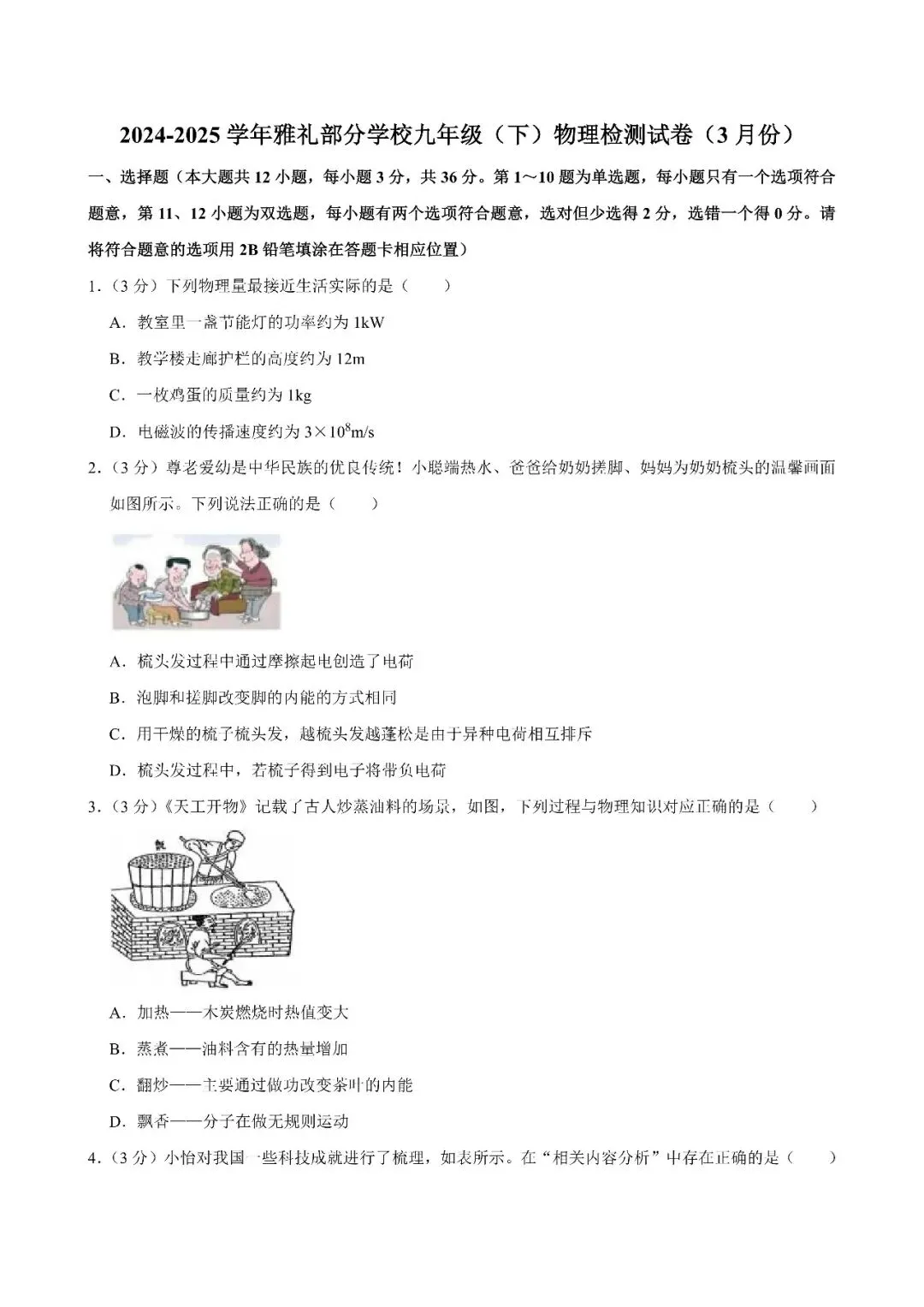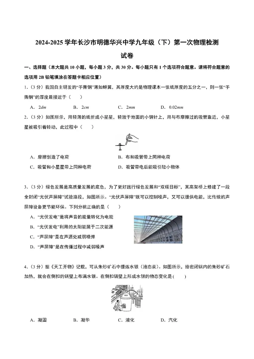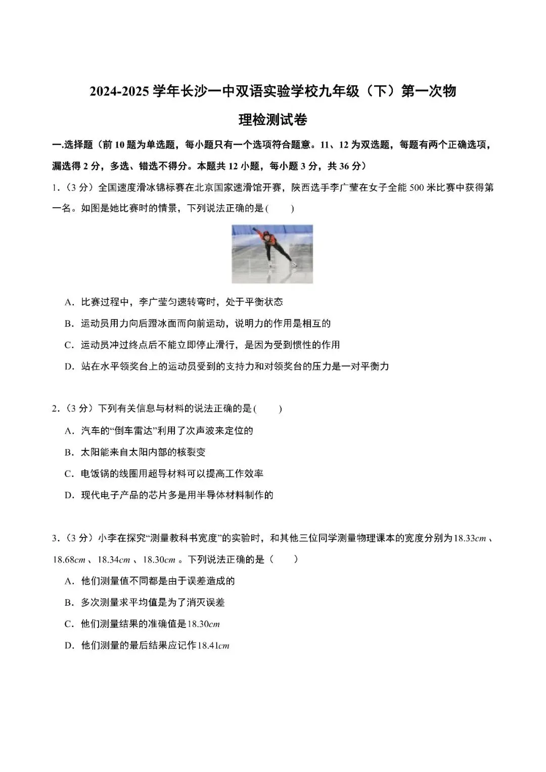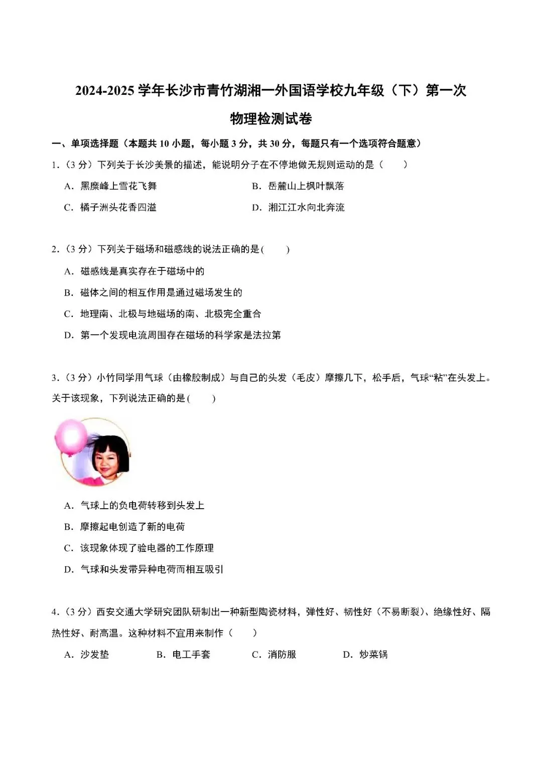 【真题汇总】——2025年长沙九年级下册入学检测物理试卷+参考答案(免费领取)