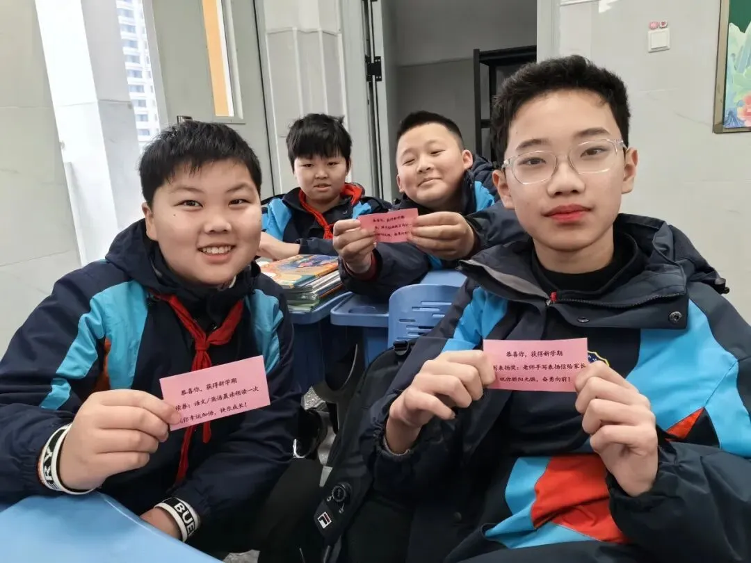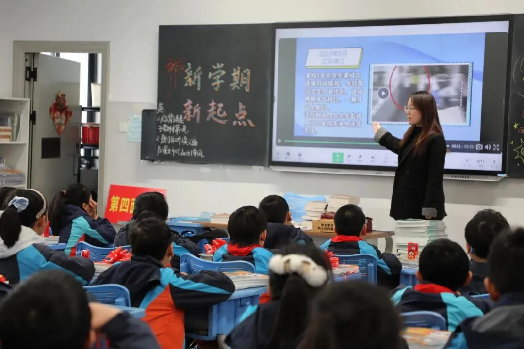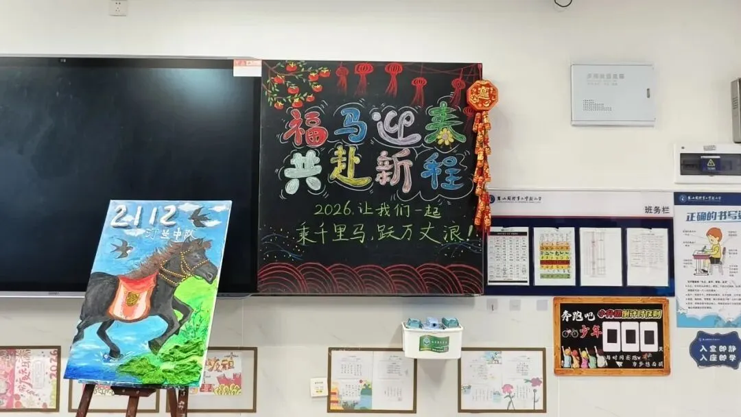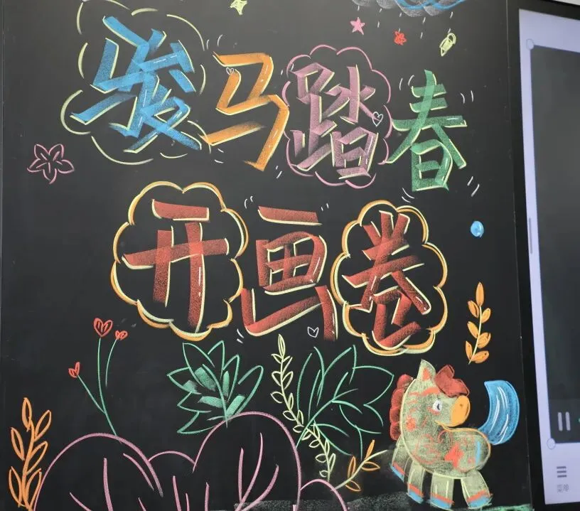 报到过程中,老师们精心准备的“开学小红包”成为孩子们的惊喜亮点,粉色幸运卡片里的点歌券、领读券、手写表扬奖等趣味福利,承载着老师的爱与期许,让开学的喜悦加倍。走进教室,“骏马踏春 开画卷”的创意粉笔画、童趣小马装饰与暖心开学寄语相映成趣,每一间教室都满是温暖与期待。孩子们认真观看开学第一课《种下一颗金种子》,老师们则细致核对报到信息,以专业与爱心为新学期保驾护航。